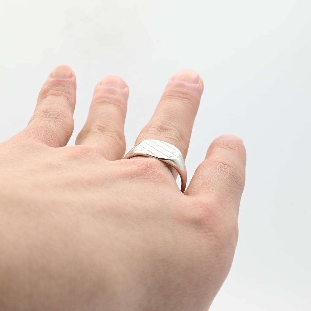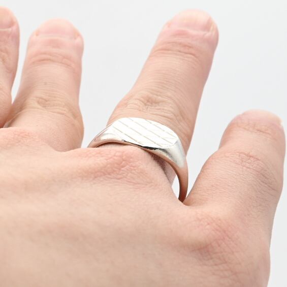 格子状のデザインを施した、美しいオーバルトップが魅力のシグネットリング。