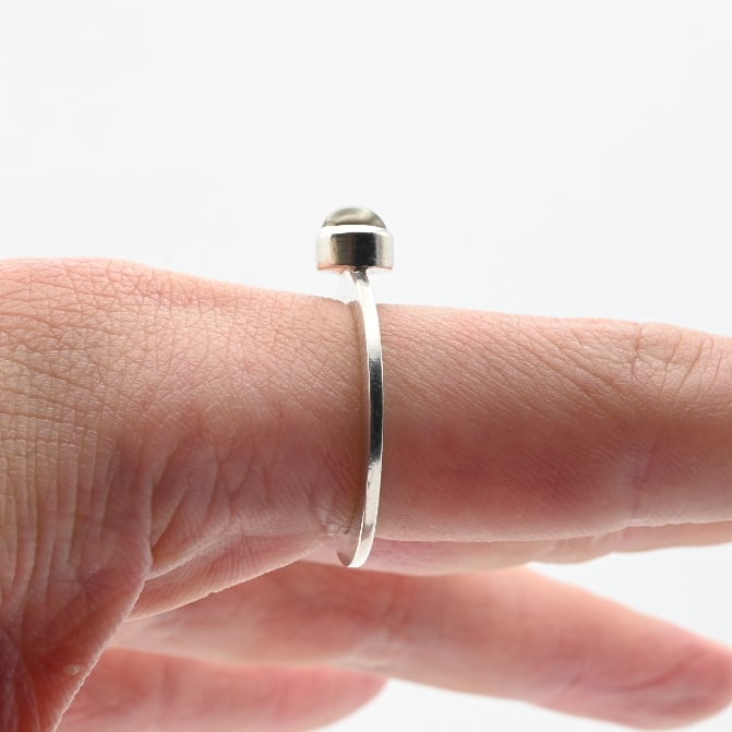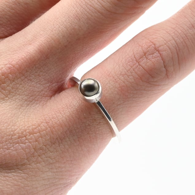 Black Pearl Accent Top Dainty Flat Ring #16.0 / Denmark