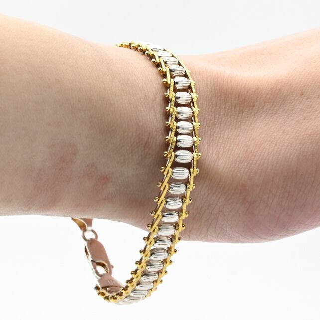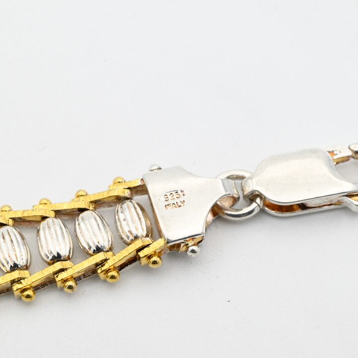 14K Gold Accent Thin Bar Link Bracelet / Italy