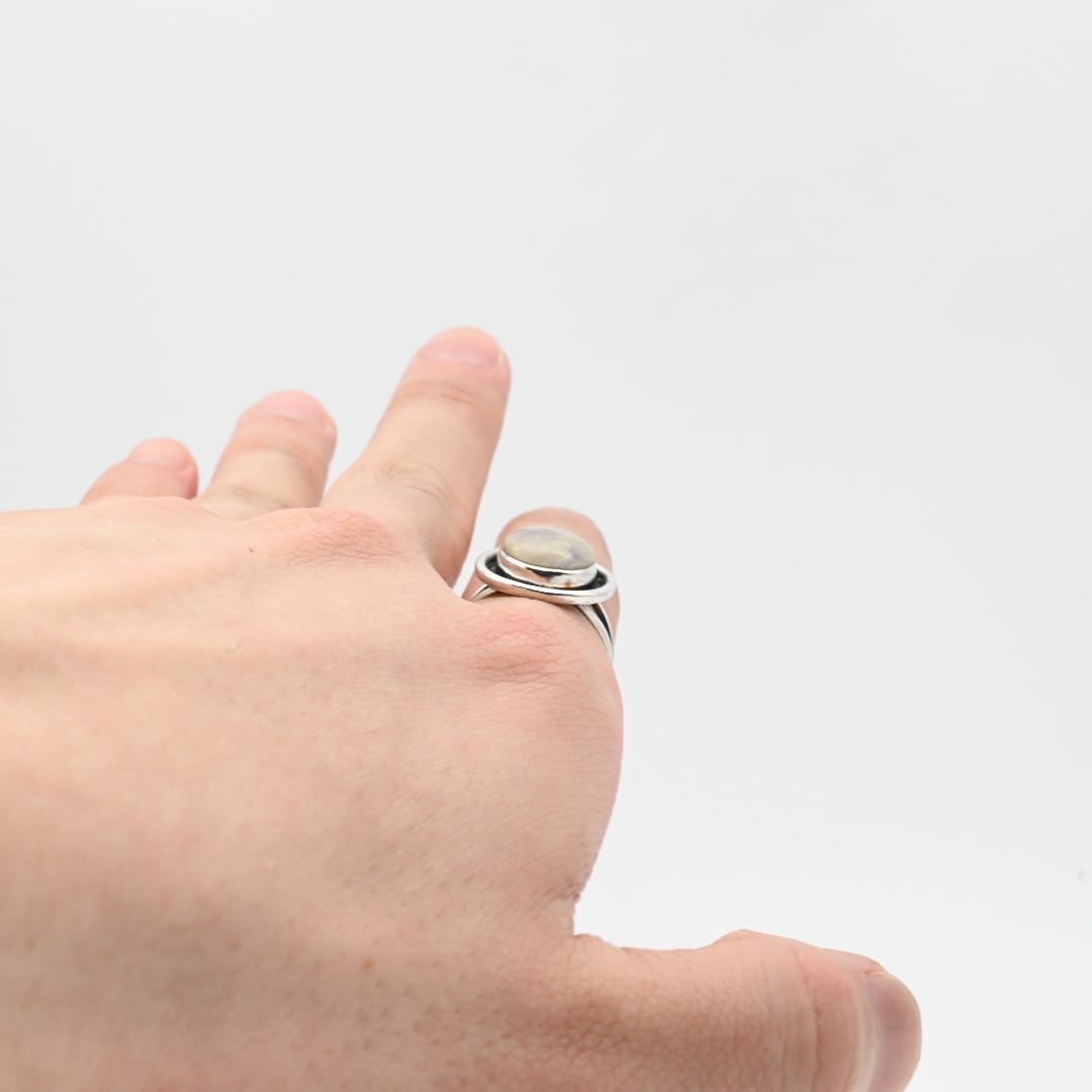 Natural Hard Stone Top Round Statement Ring #14.0 / Denmark
