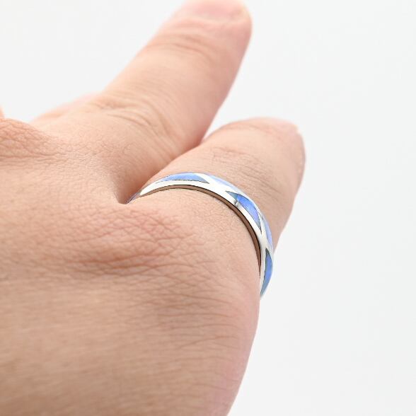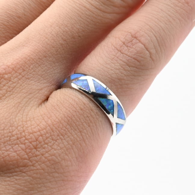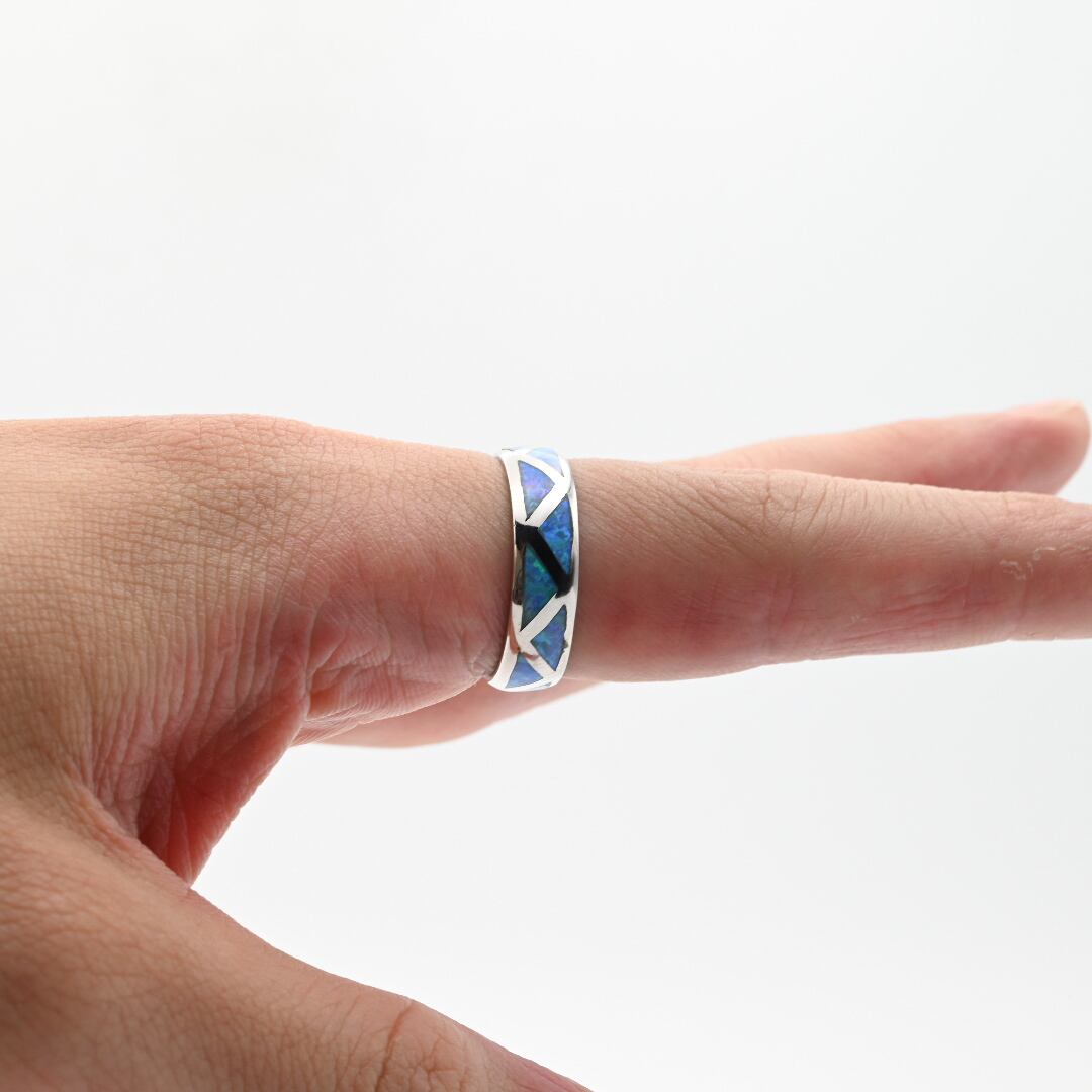 ZIGZAG Design Blue Opal Inlay Band Ring #17.5 / USA