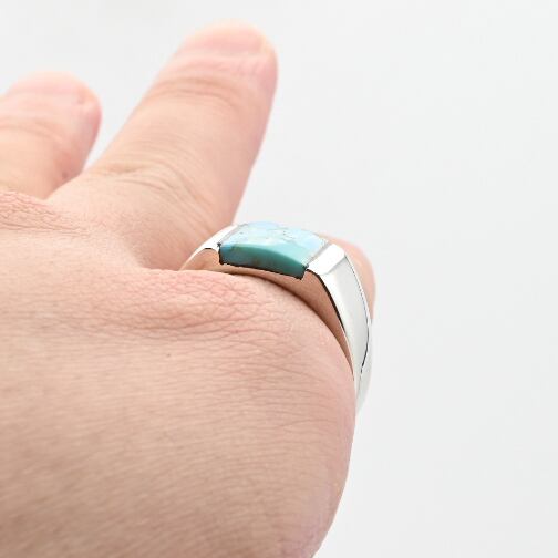 グラデーションが豊かなブルーストーンが配された、スクエアトップのシグネットリング。