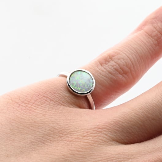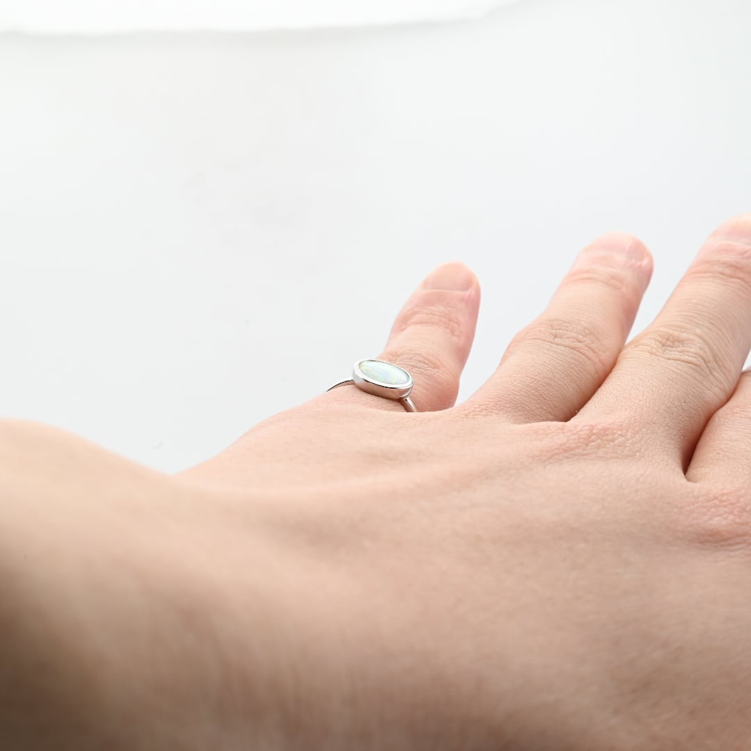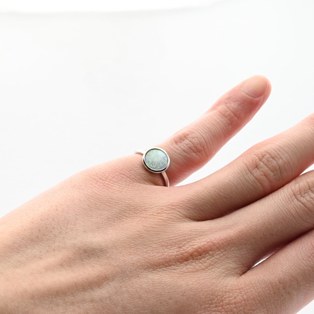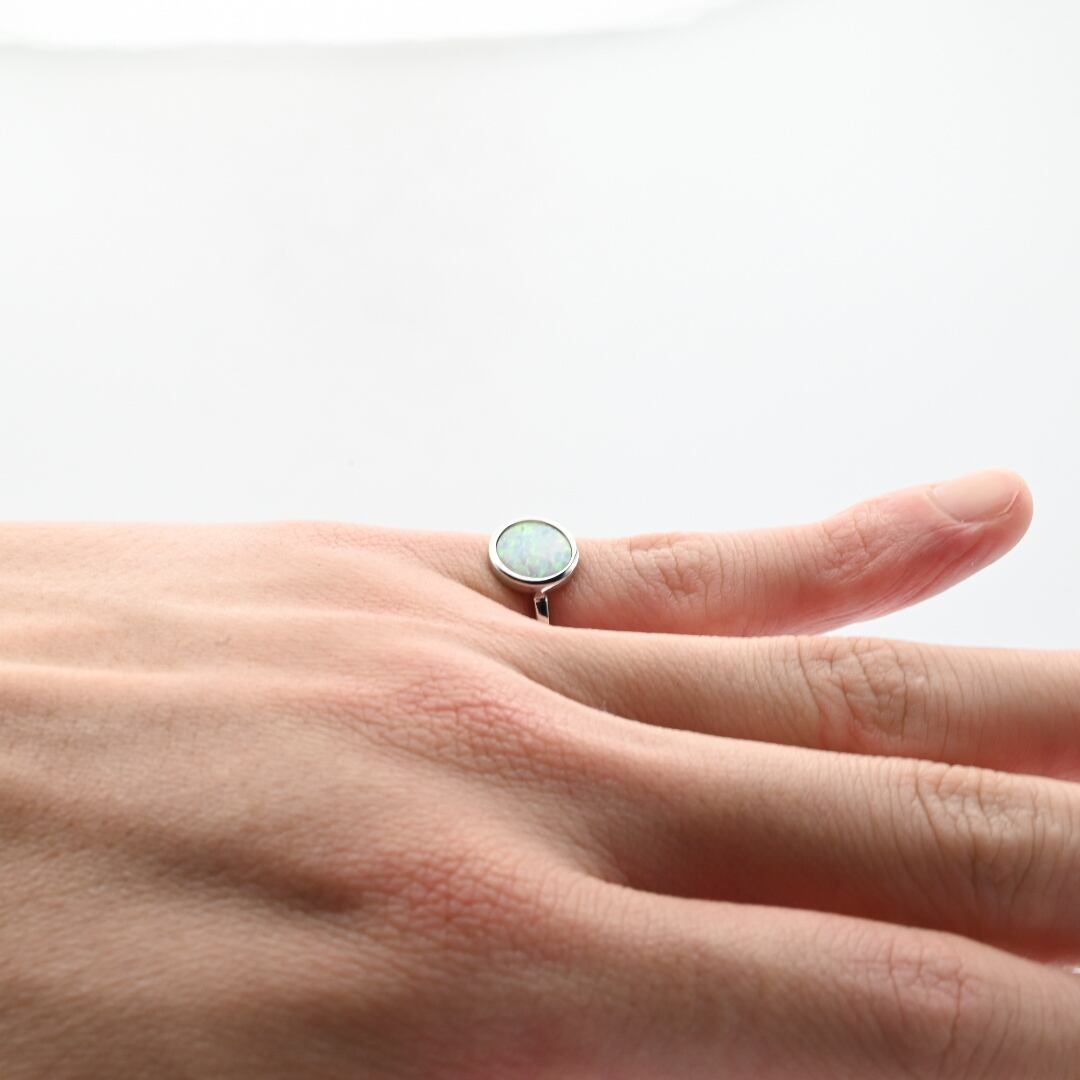 White Opal Inlay Circle Design Top Ring #8.5 / Denmark