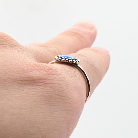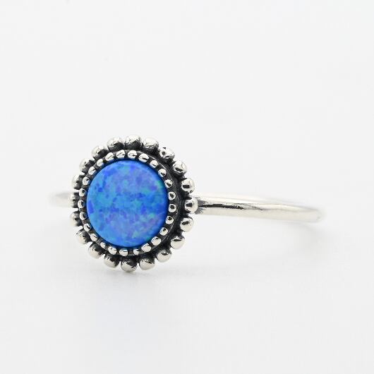Sophisticated Circle Design Blue Opal Inlay Ring #15.0 / Denmark