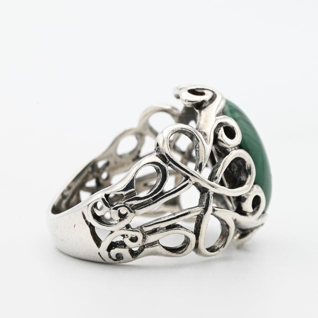 Round Malachite Top Open Work Wide Ring #12.0 / Denmark