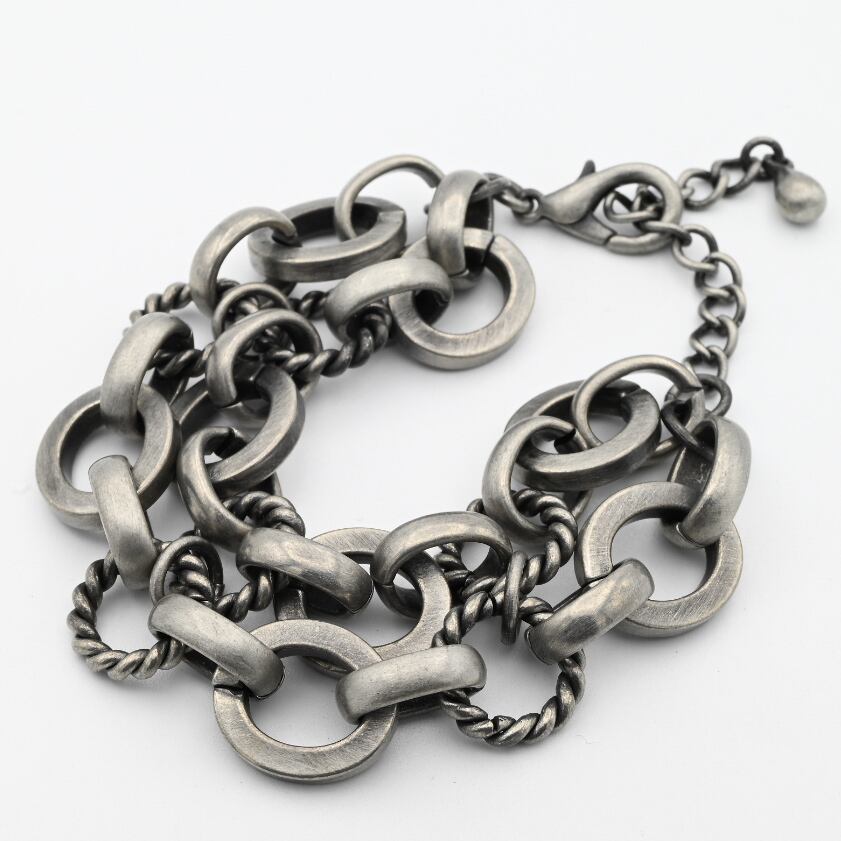 Oxidized Silver Double Chain Link Bracelet / Denmark