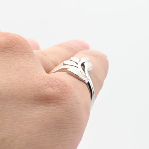 White Opal Inlay Dancing Leaf Design Ring #14.0 / Denmark