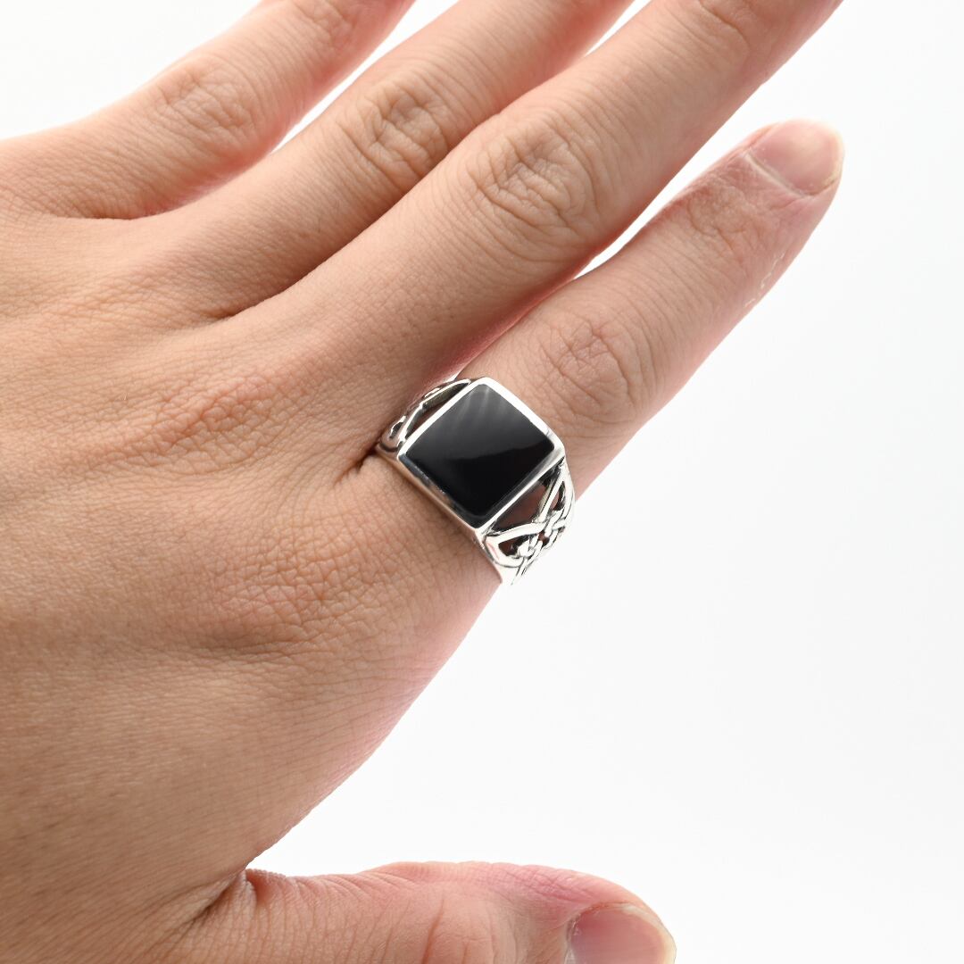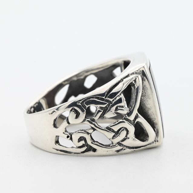 Black Onyx Inlay Open Work Signet Ring #19.5 / Denmark