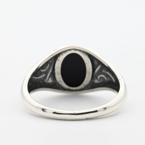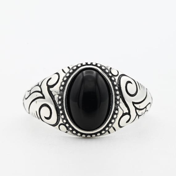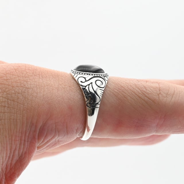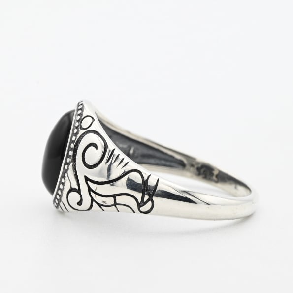 Black Onyx Top Oriental Design Ring #19.0 / Denmark