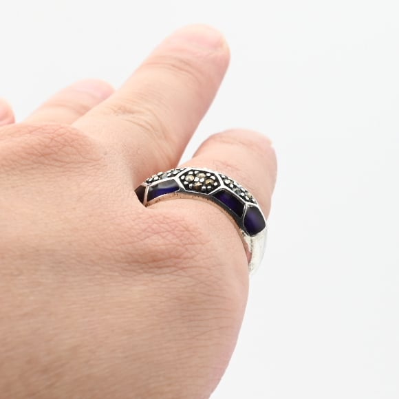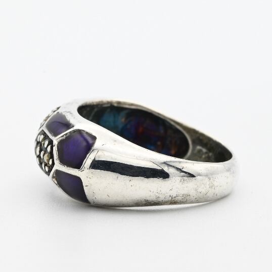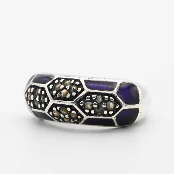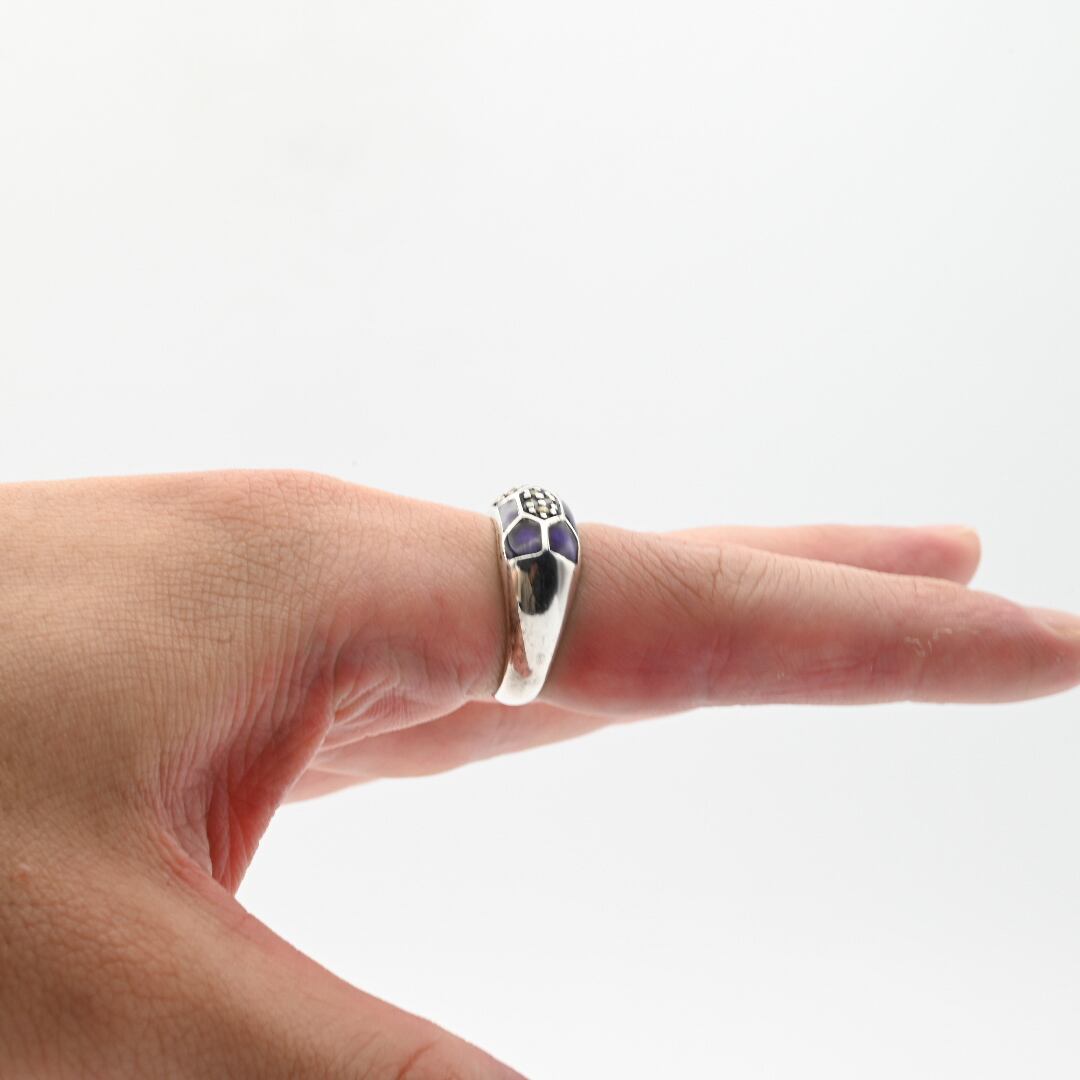 Marcasite / Purple Enamel Accent Dome Design Ring #13.5 / Denmark