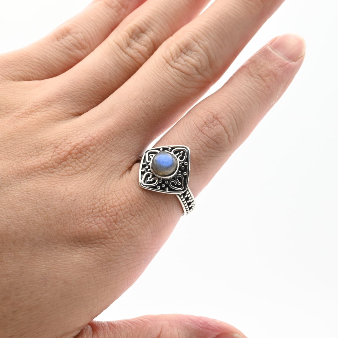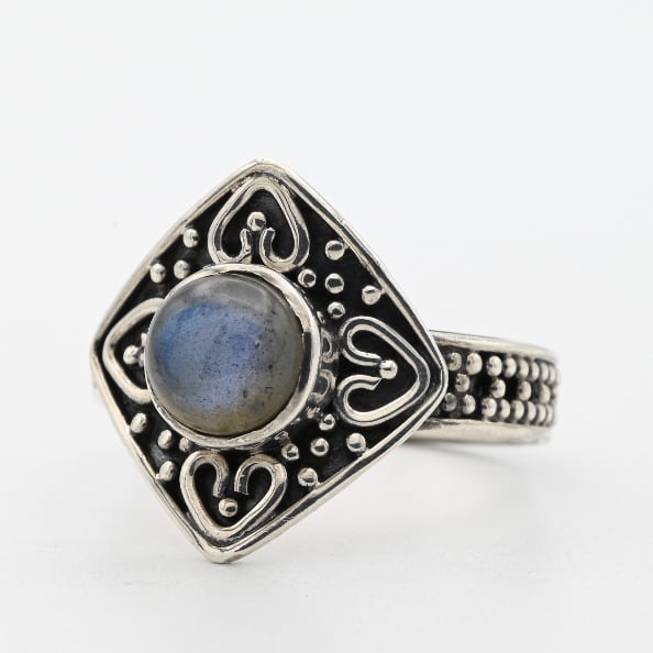 Labradorite Top Delicate Beads Work design Ring #19.0 / Denmark