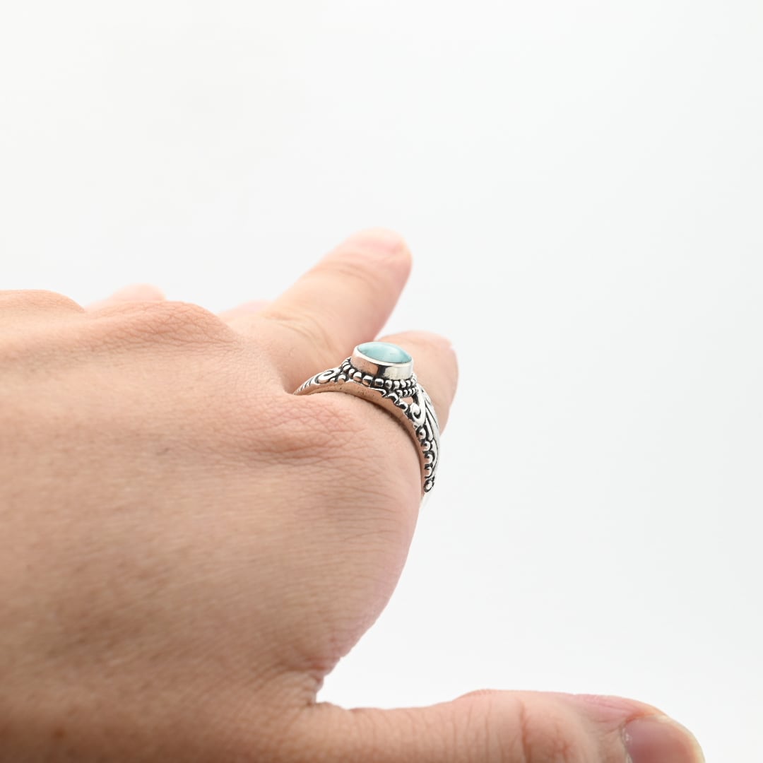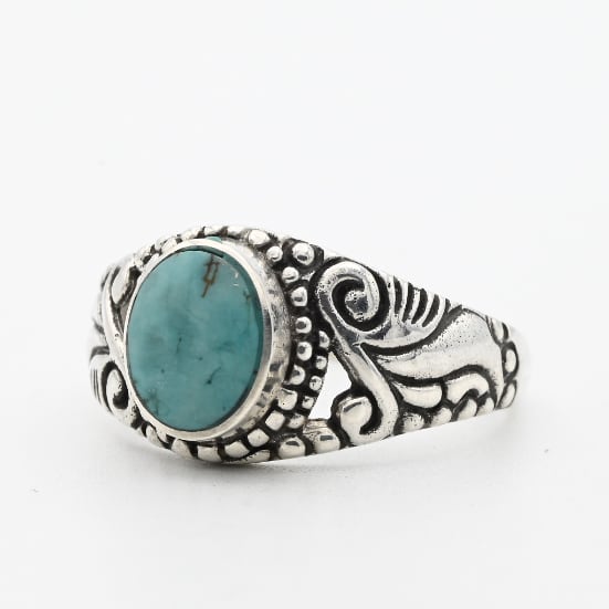 Rounded Turquoise Top Oriental Design Ring #20.5 / Denmark