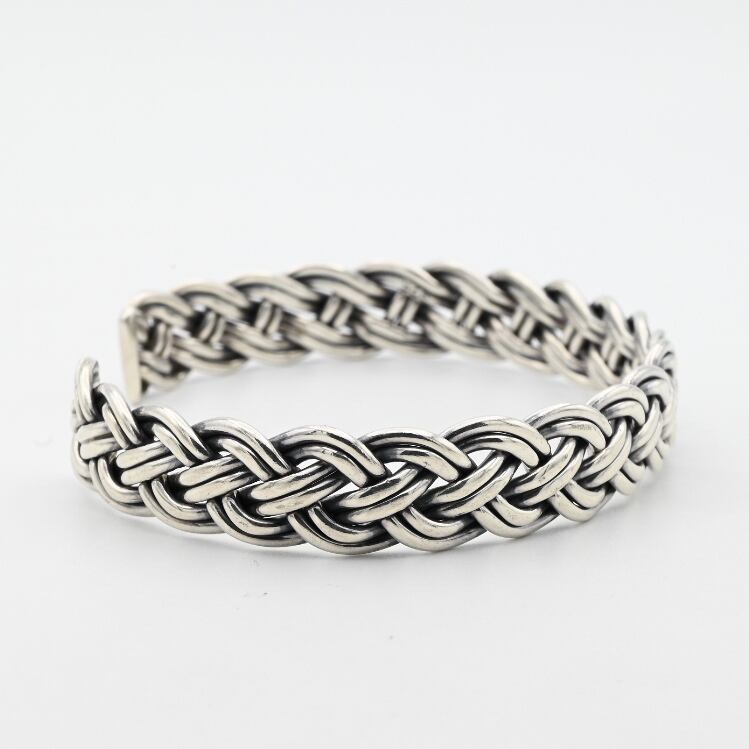 2本のシルバーを引き揃え、実際に編み込んだアイテム。