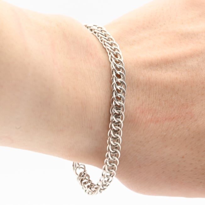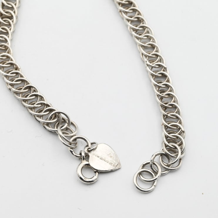 極小の丸型チェーンが複雑に繋ぎ合わされたチェーンブレスレット。