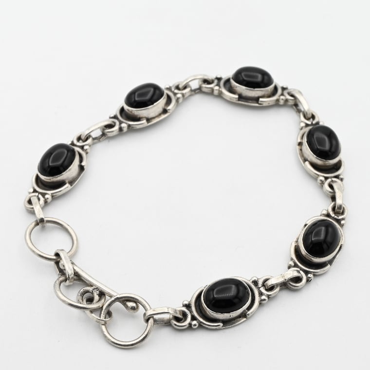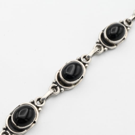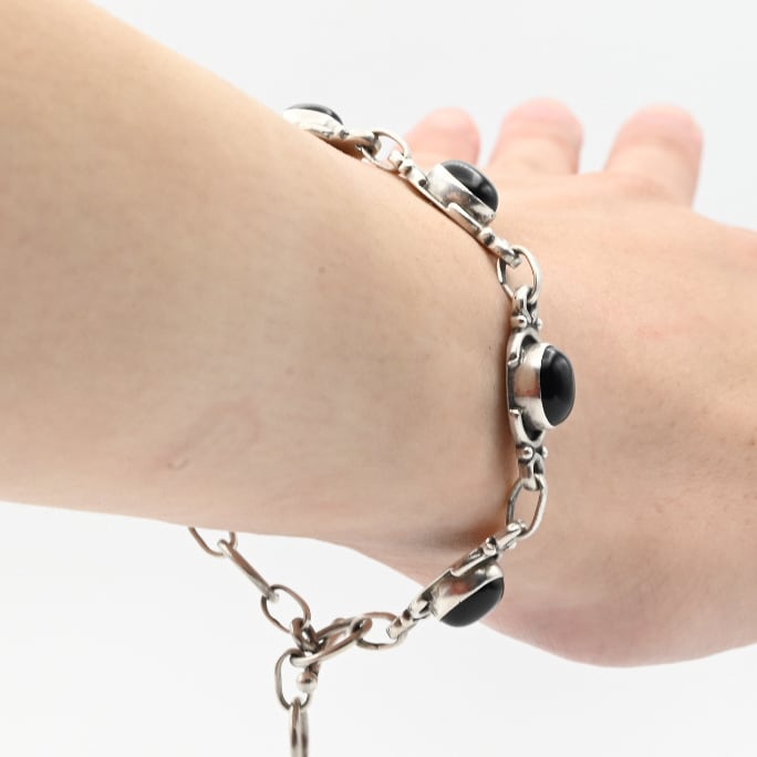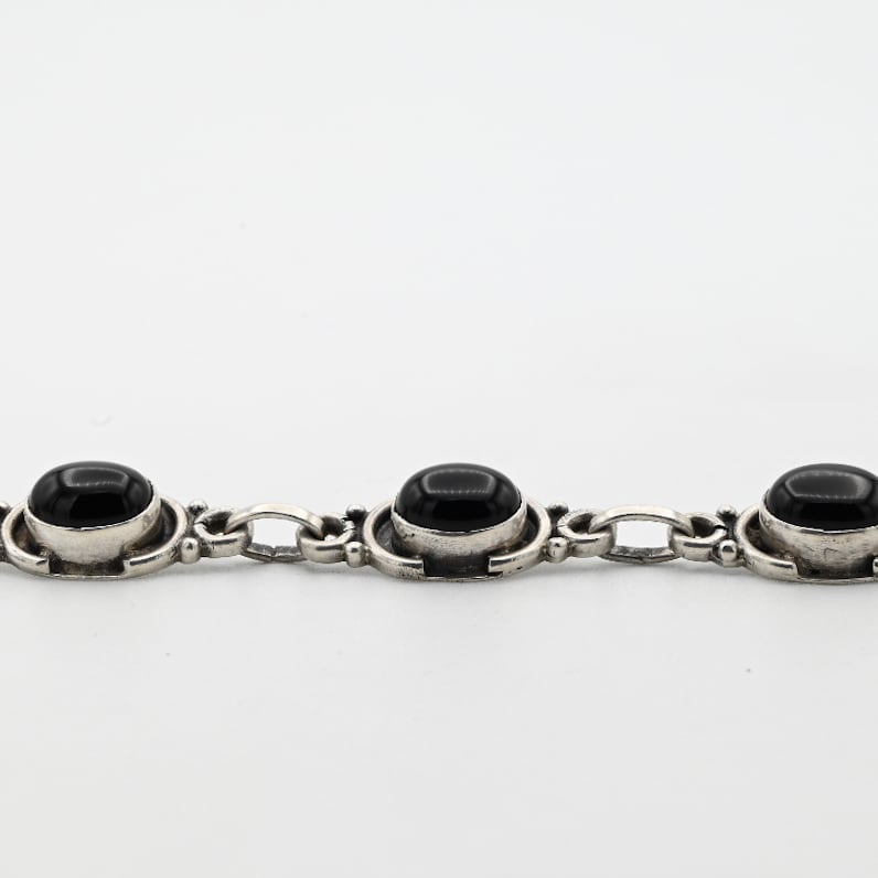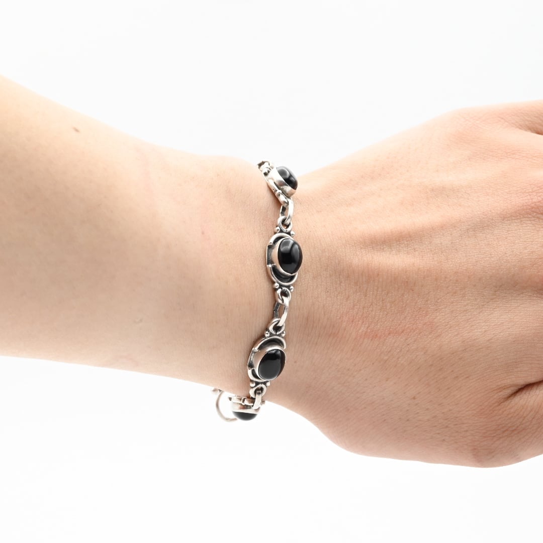 Rounded Black Onyx Accent Link Bracelet / Denmark