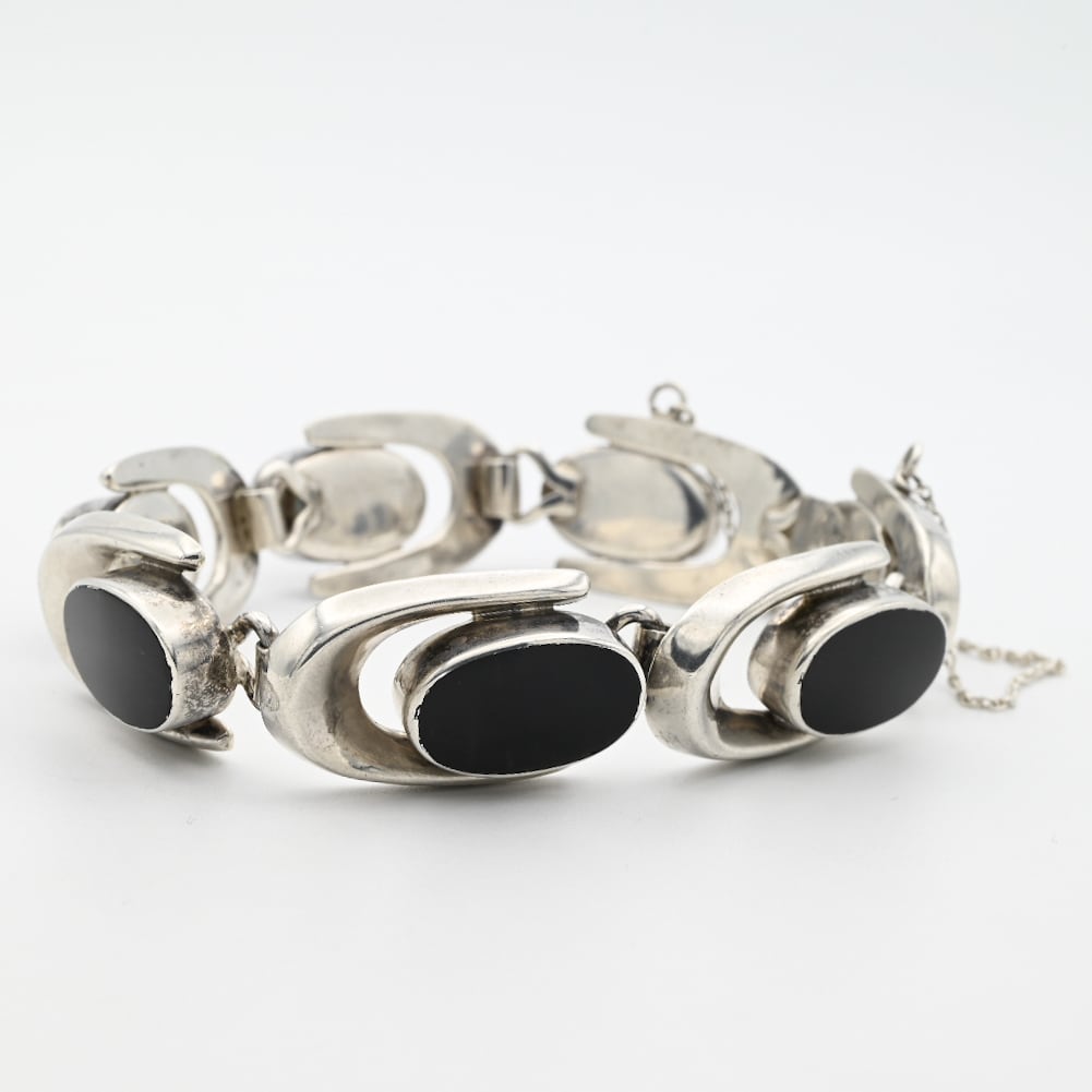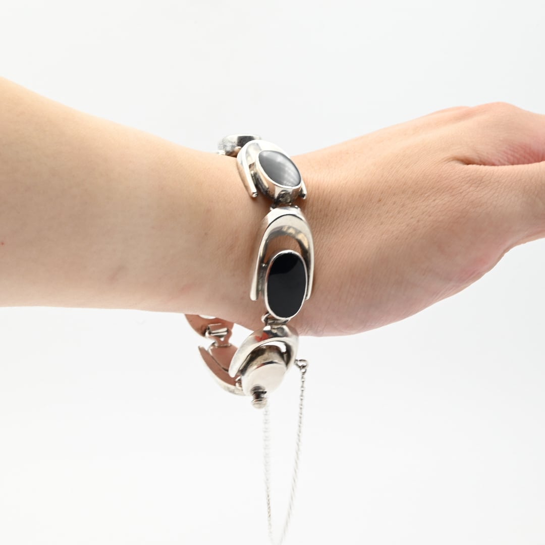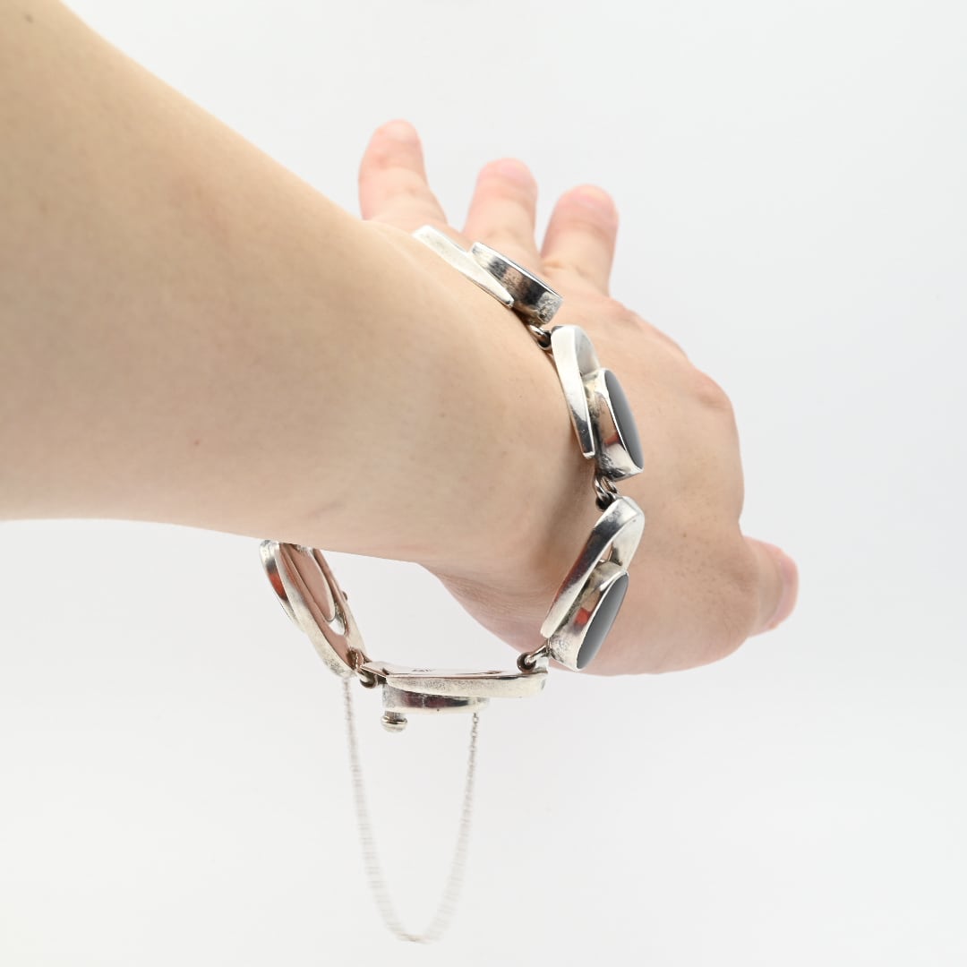 Black Onyx Accent Top Graceful Design Bracelet / Denmark