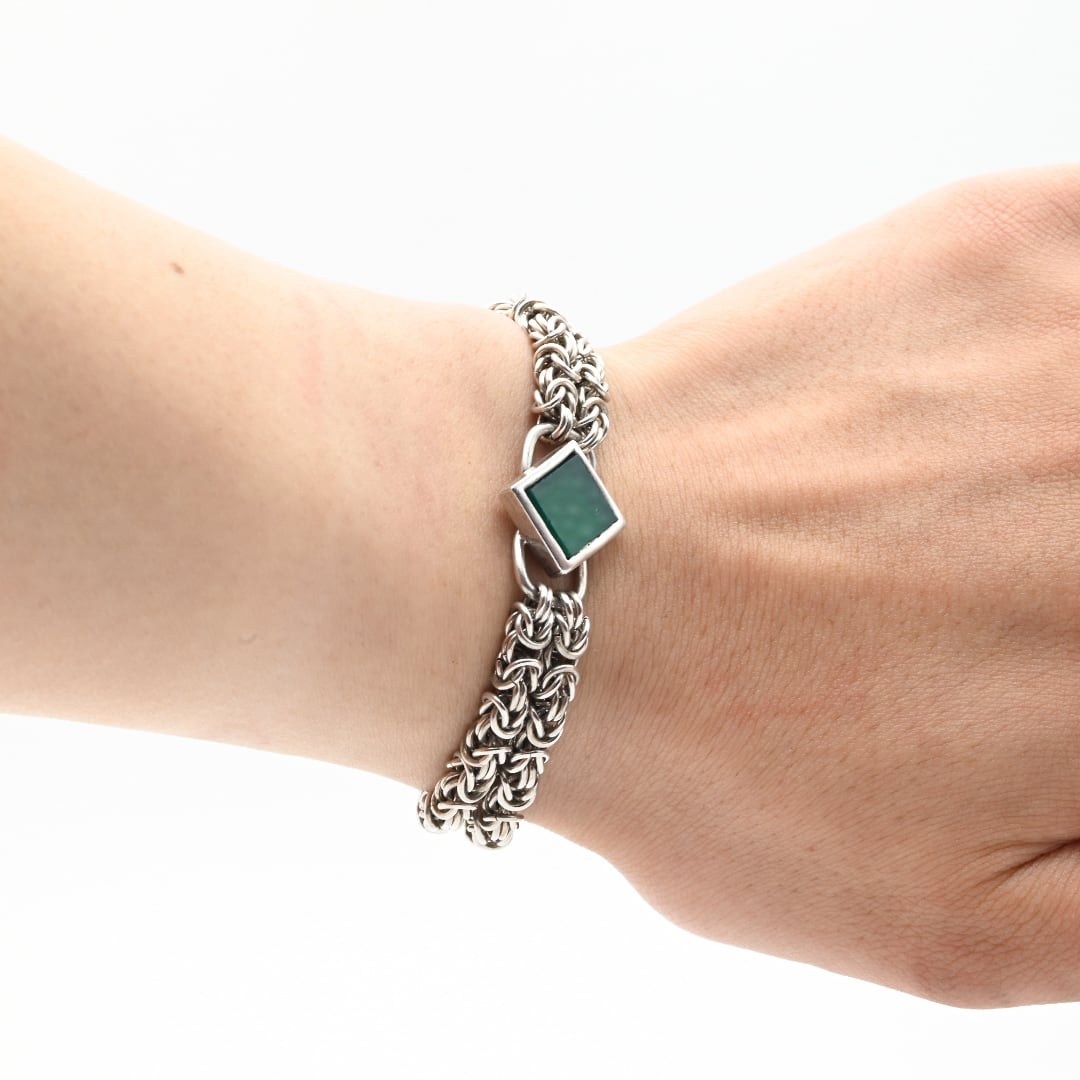 Green Onyx Accent Double Byzantine Chain Bracelet / Denmark