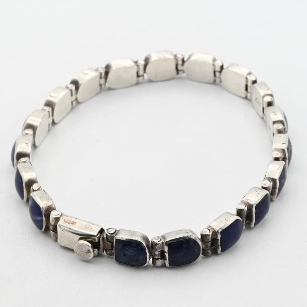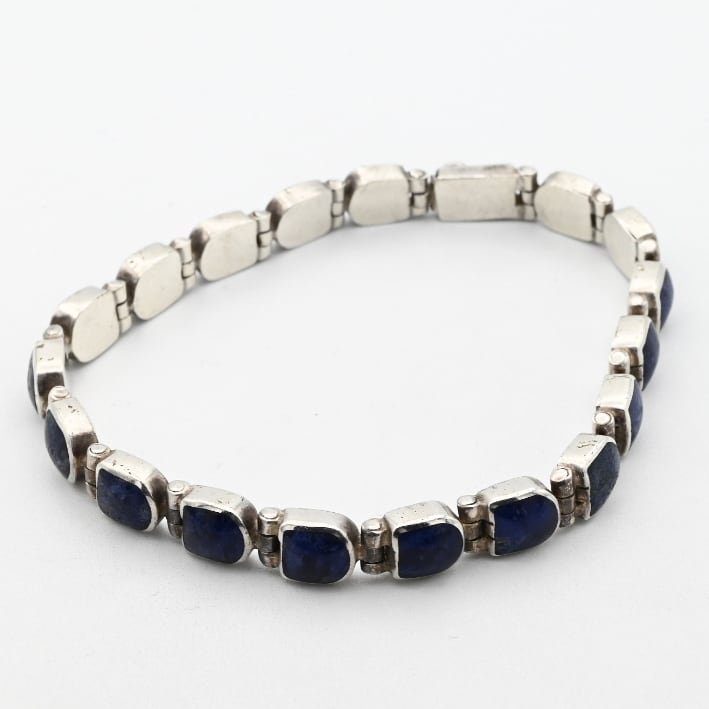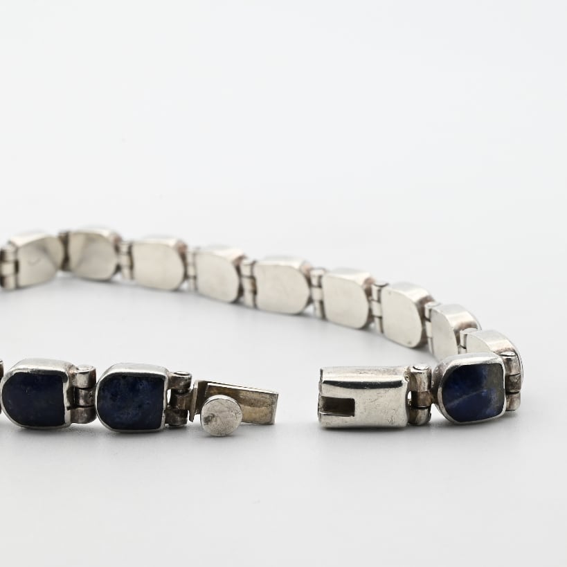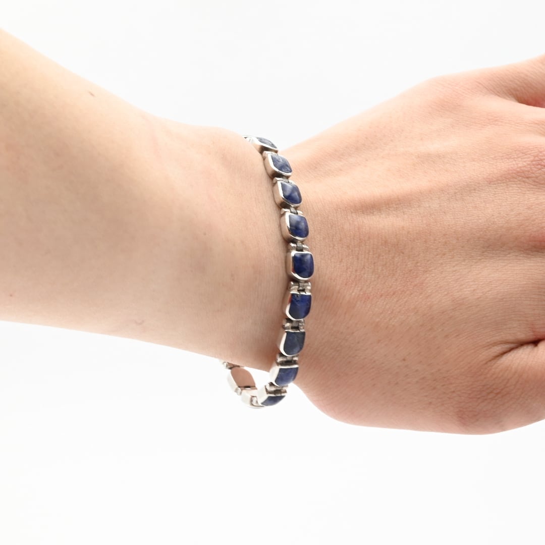 Sodalite Stone Accent Trapezoid Shape Link Bracelet / Mexico