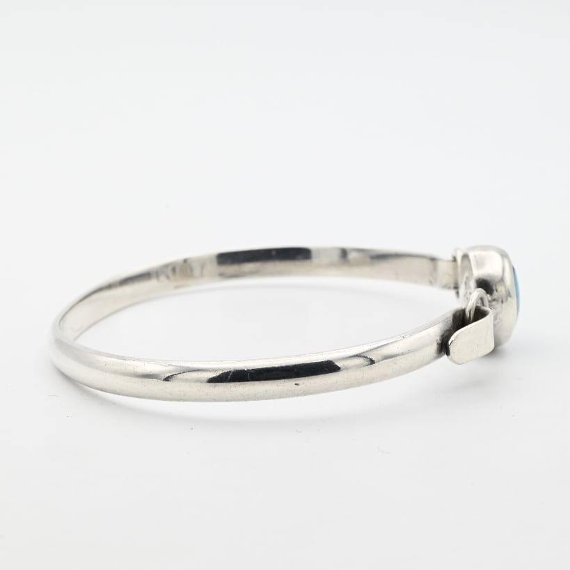 トップに美しいブルーストーンが配された、スクロール型のブレスレット。