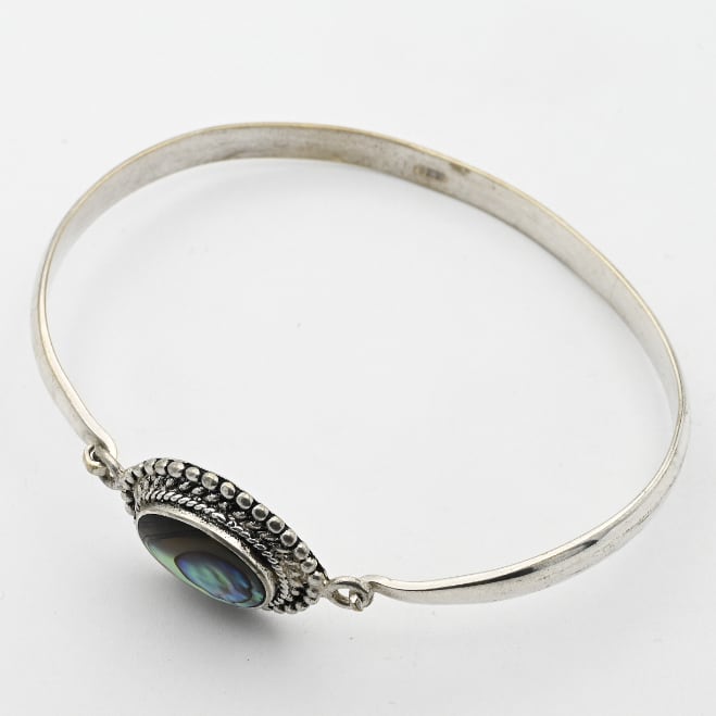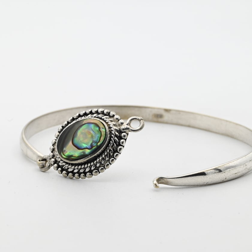 Mother Of Pearl Accent Front Hinged Scrolls Bracelet / Denmark