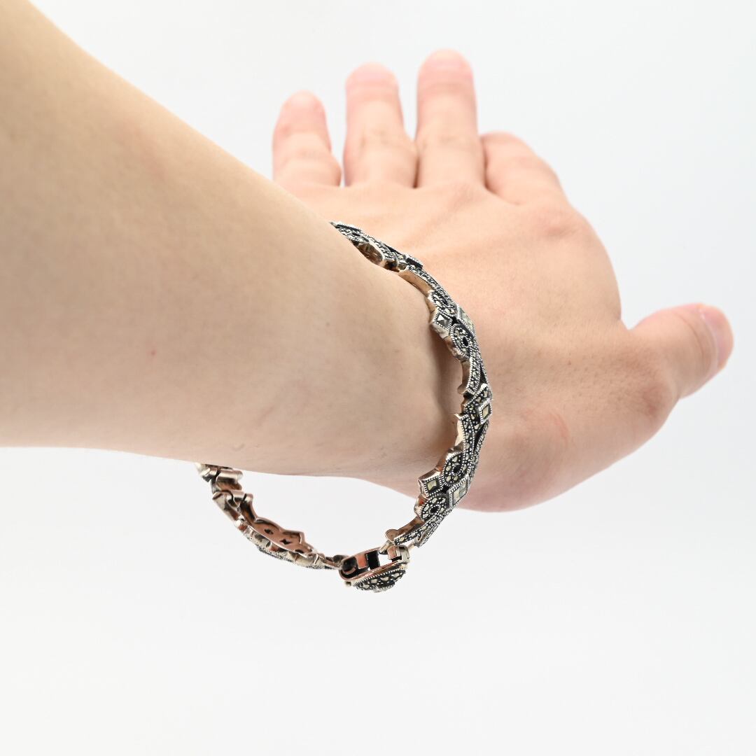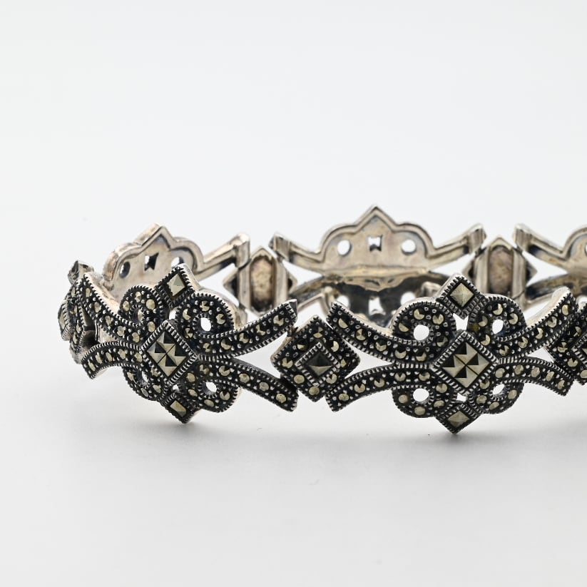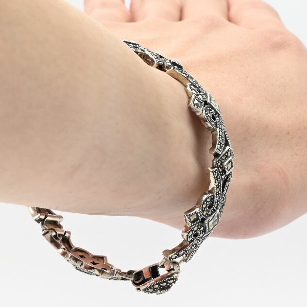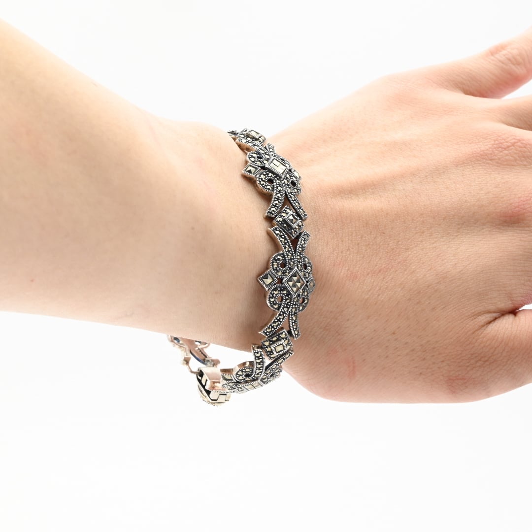 Marcasites Accent Graceful Design Panel Link Bracelet / Denmark