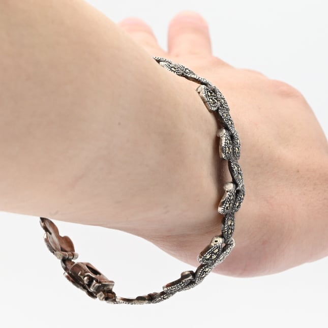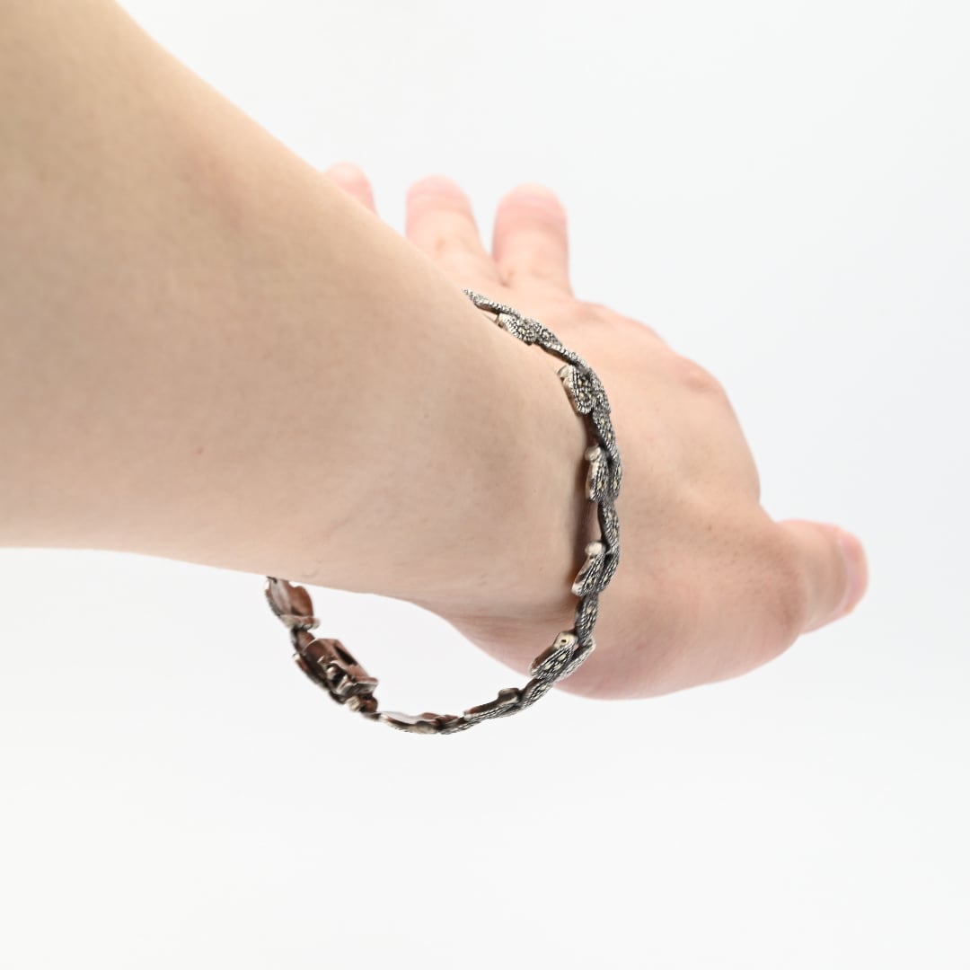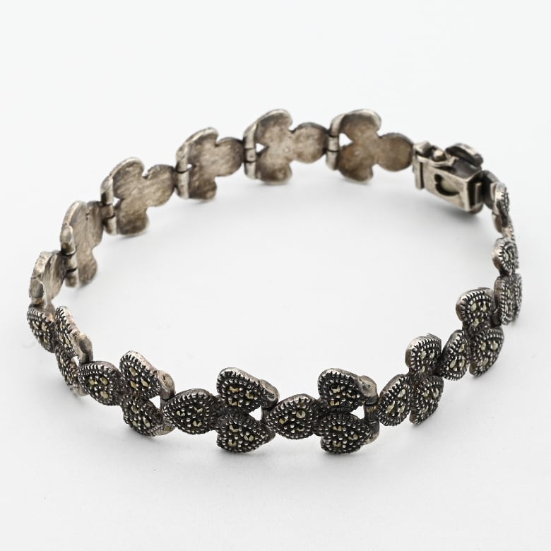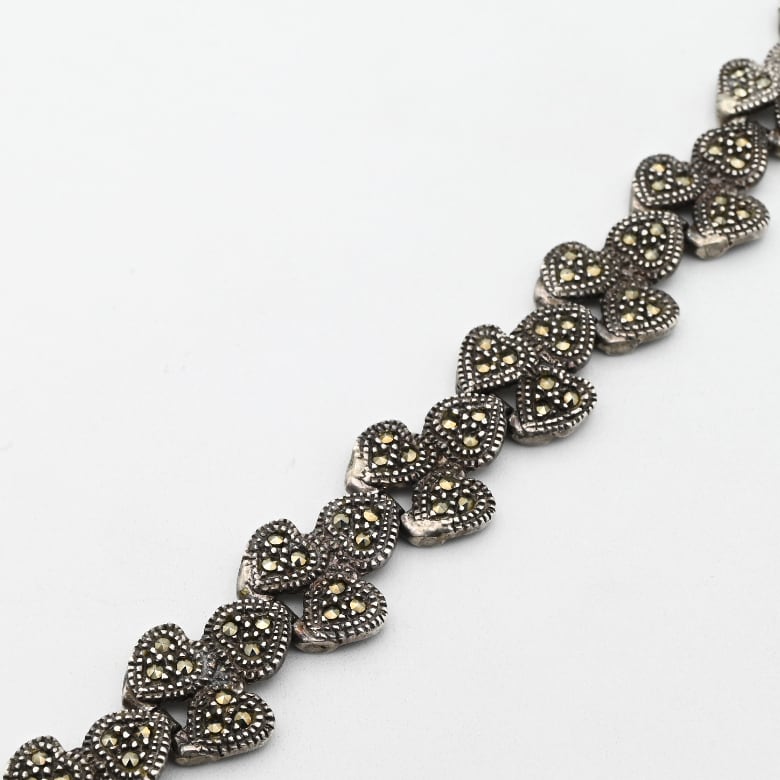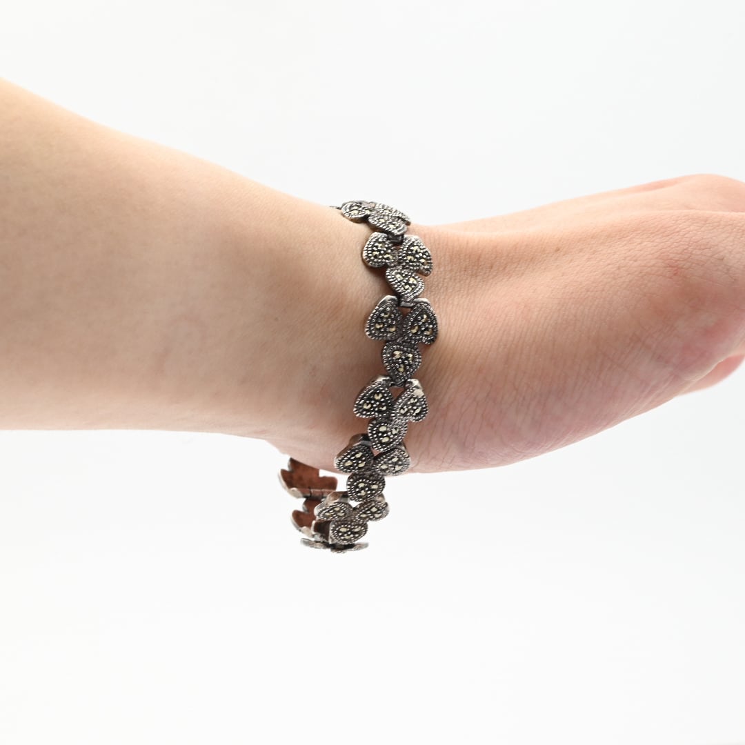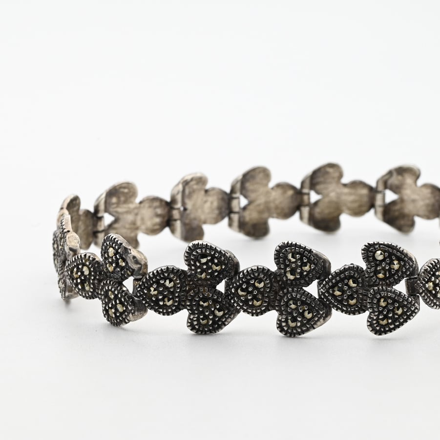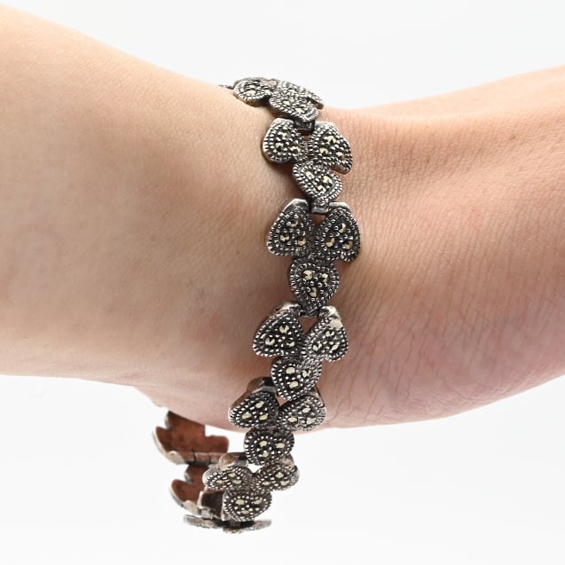 Marcasite Accent Hearty Design Panel Link Bracelet / Denmark
