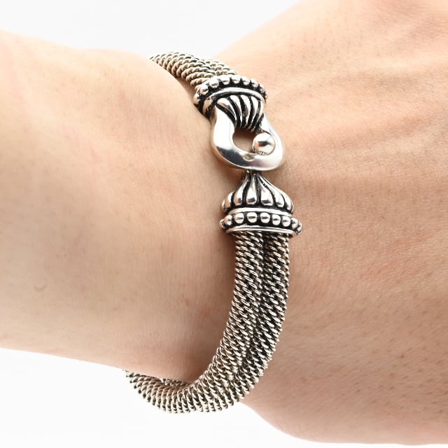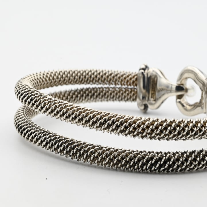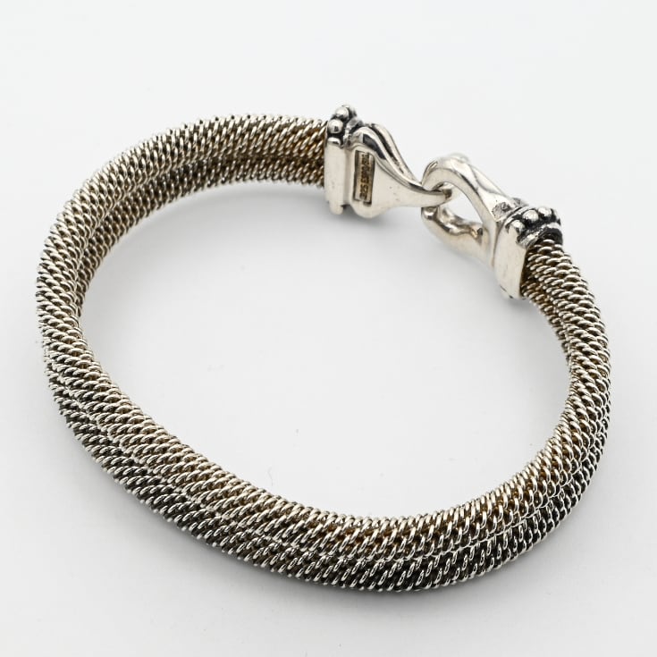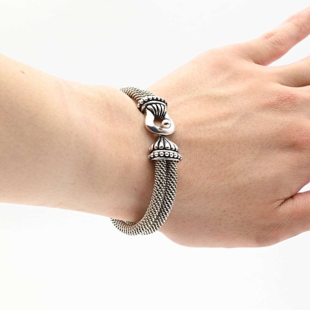 細やかなシルバーを実際に編み込み、立体的に仕上げたブレスレット。