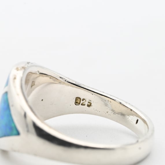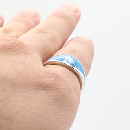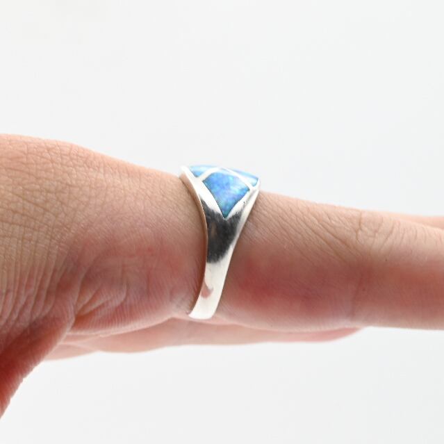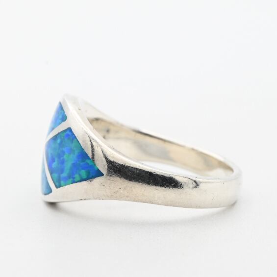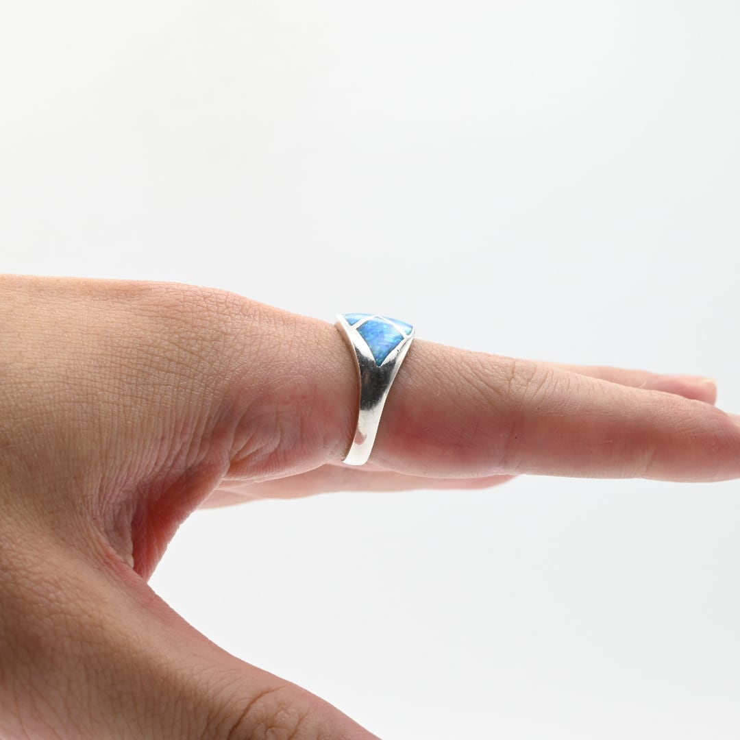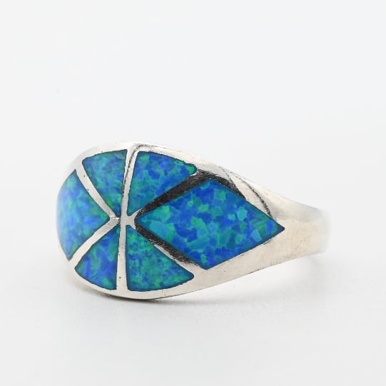 Blue Opal Inlay Oval Top Design Ring #15.5 / Denmark
