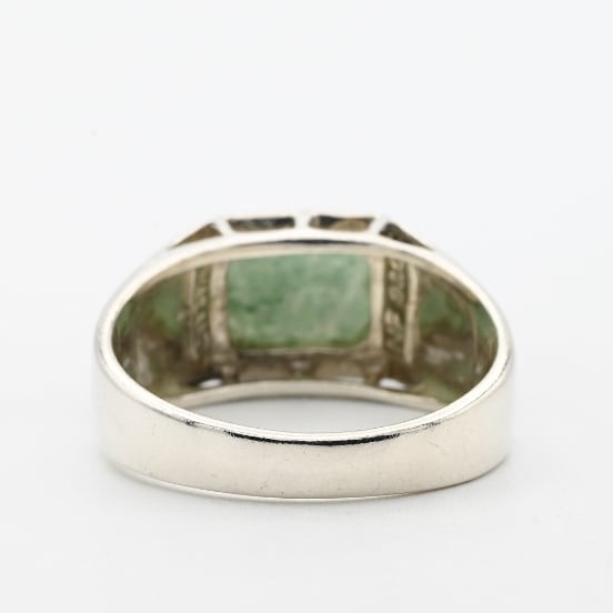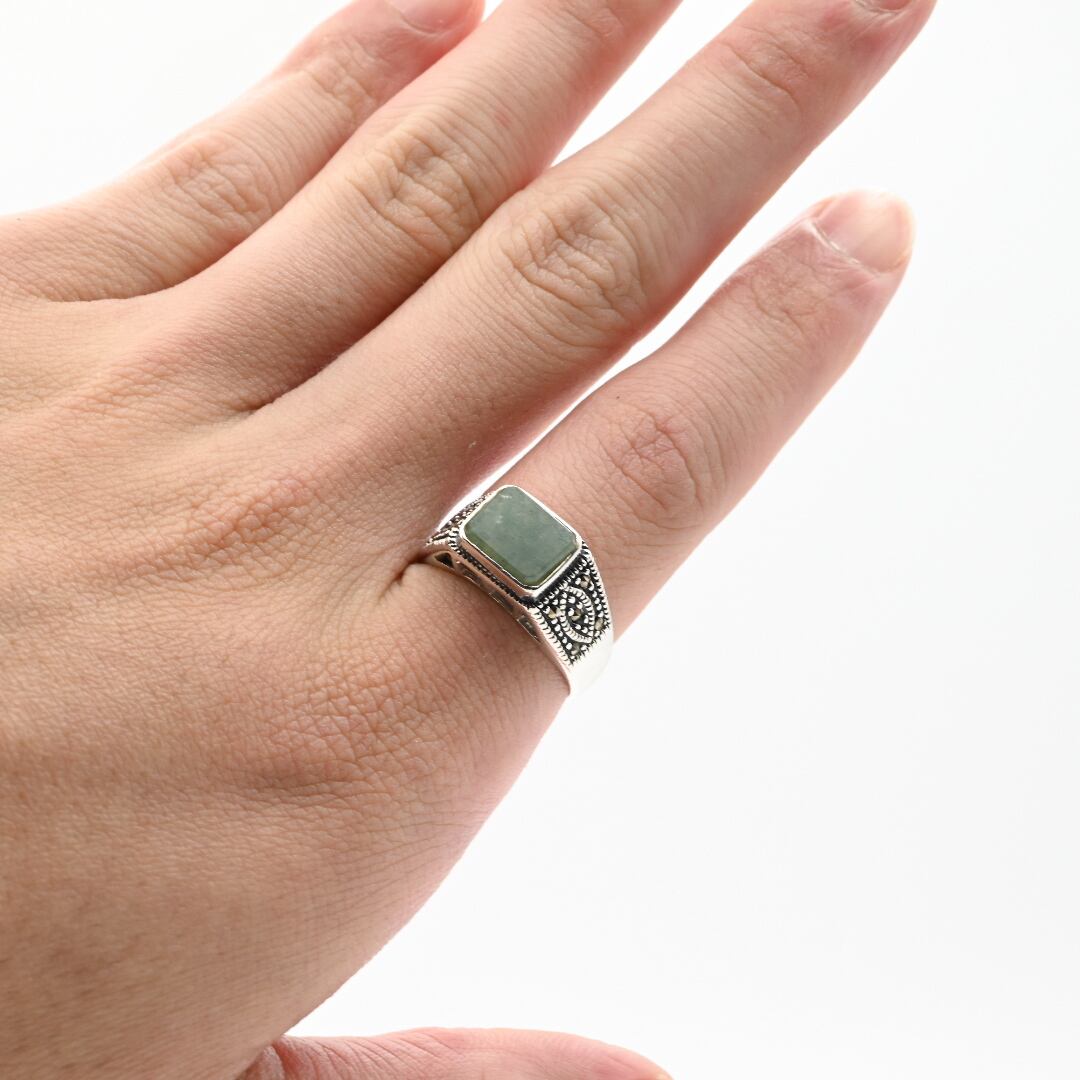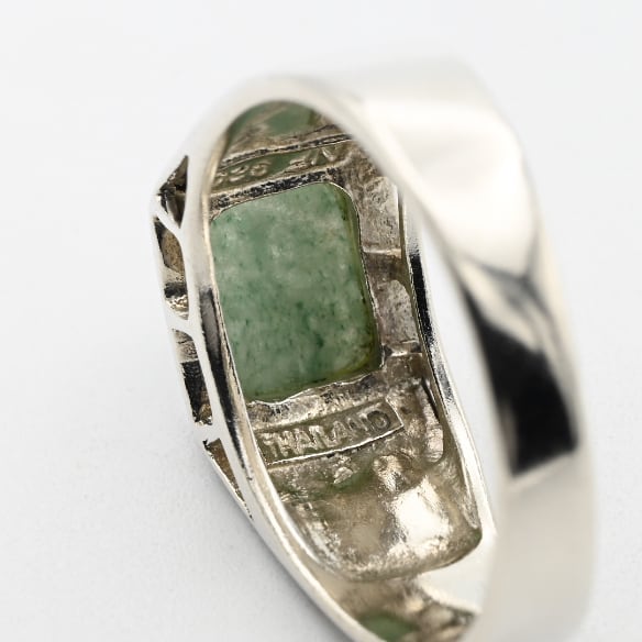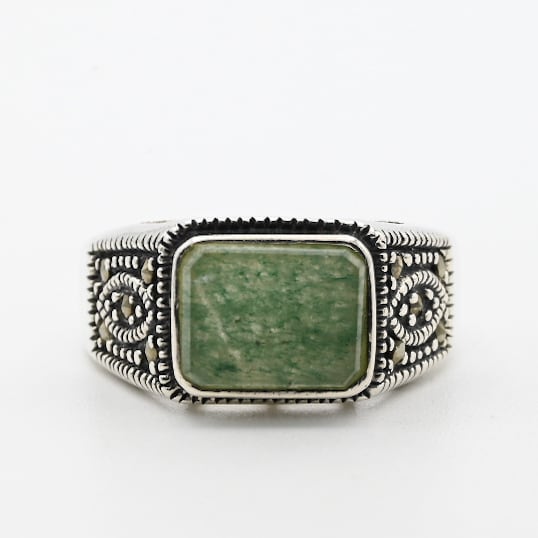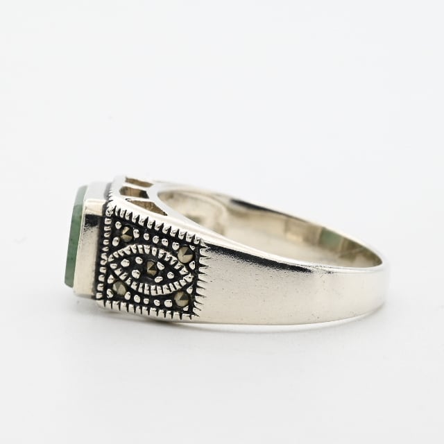 Aventurine / Marcasite Accent Square Signet Ring #19.0 / Thailand