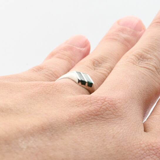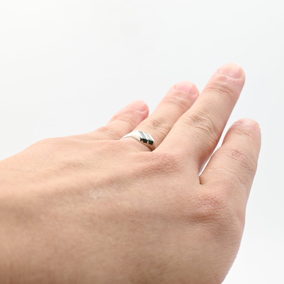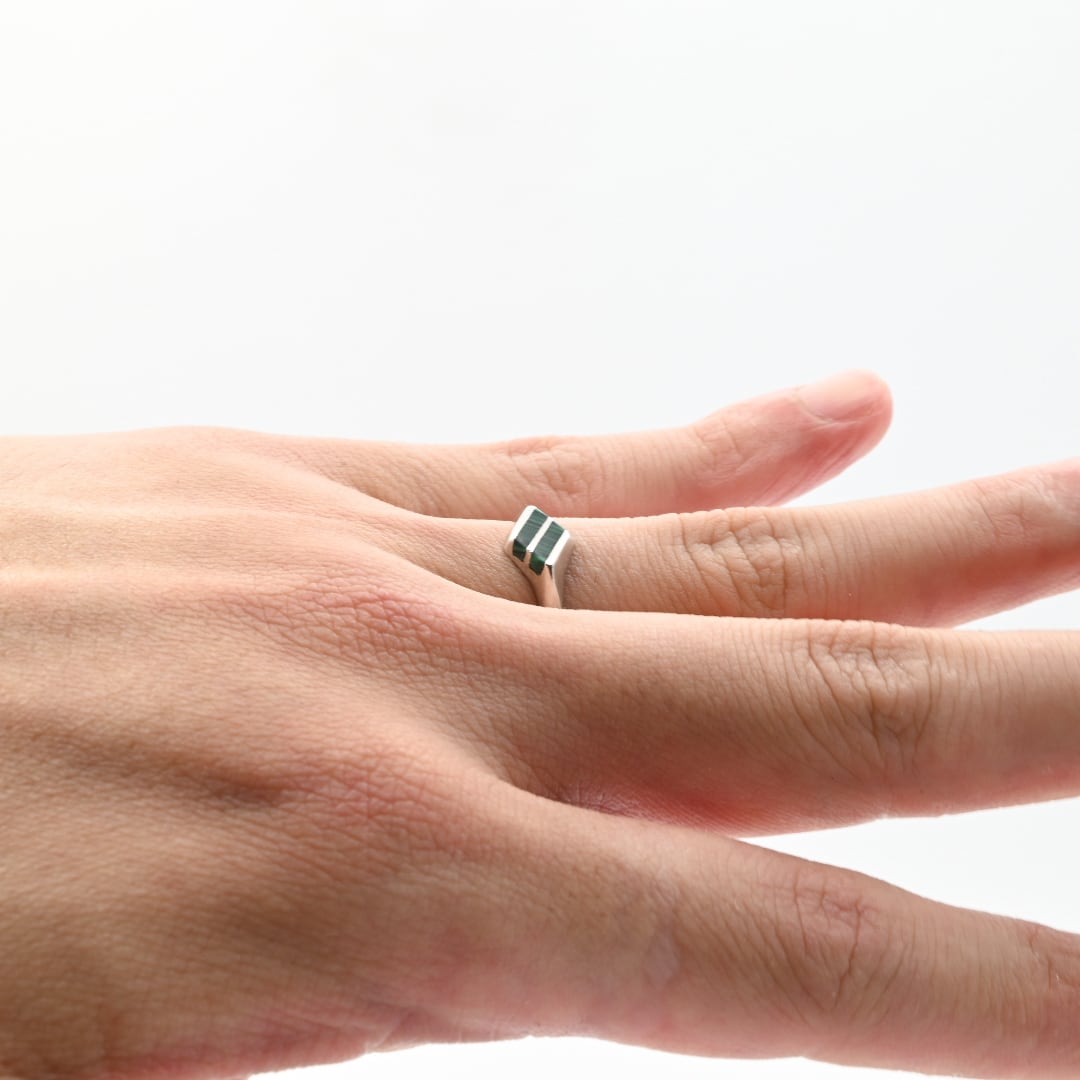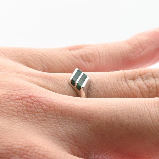 Malachite Inlay Thin Rhombus Top Ring #13.0 / Mexico