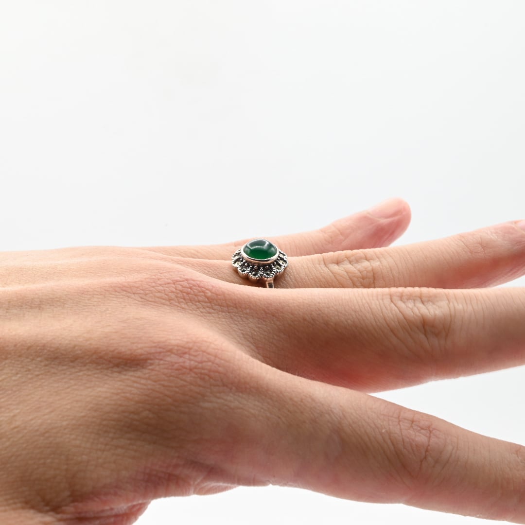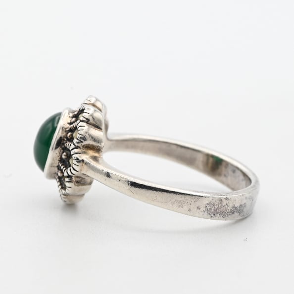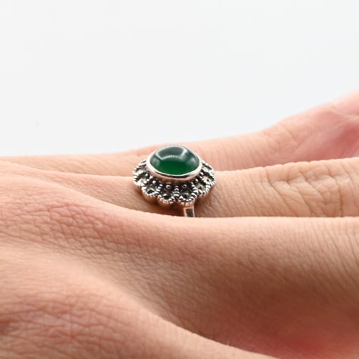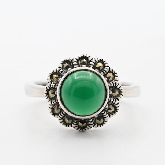 Green Onyx / Marcasite Accent Flower Motif Ring #13.0 / Denmark