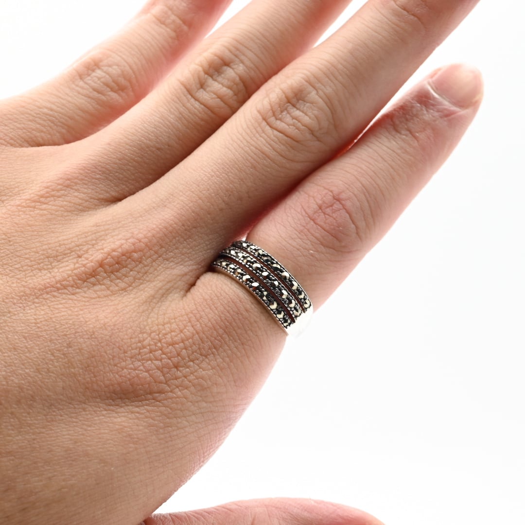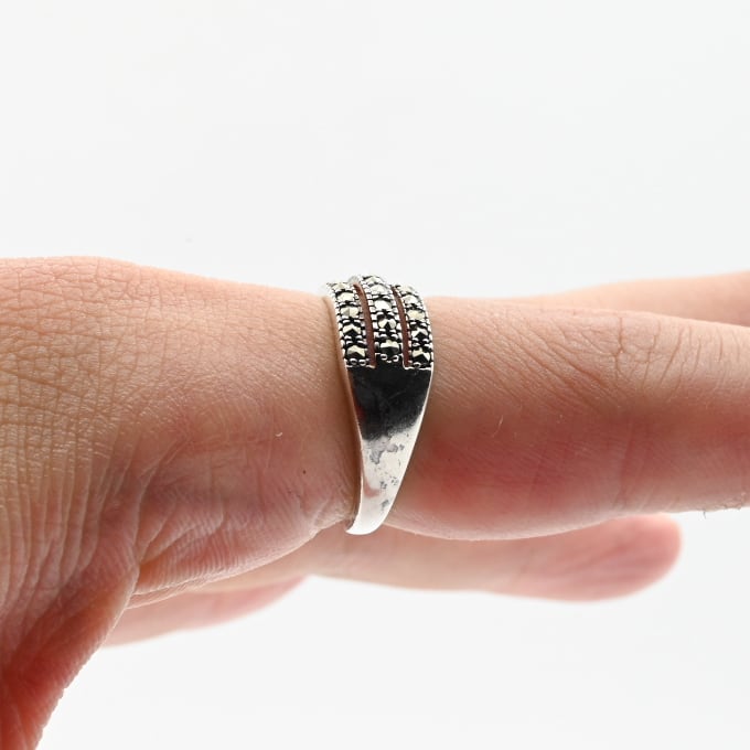 Marcasite Accent Three Line Design Ring #14.0 / Denmark