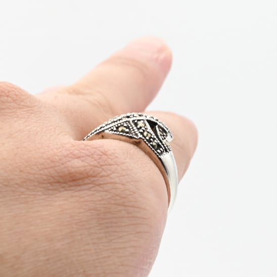 Marcasite Accent Flamboyant Design Ring #15.5 / Denmark