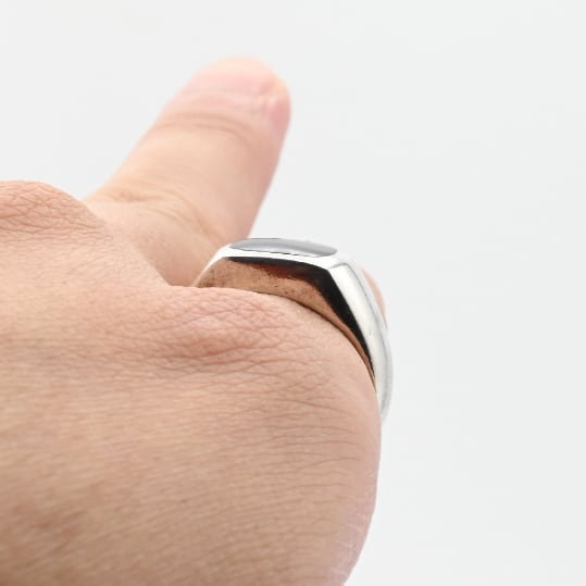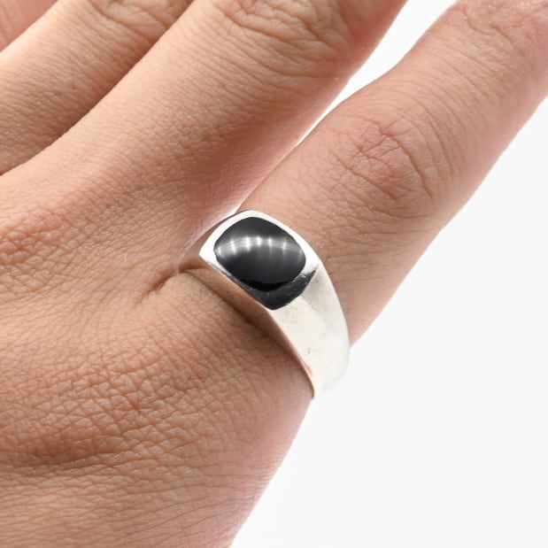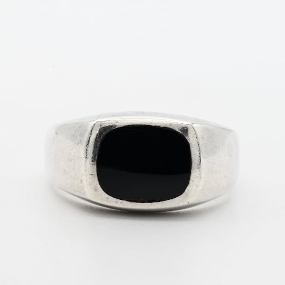 Black Onyx Inlay Square Top Signet Ring #20.0 / Denmark
