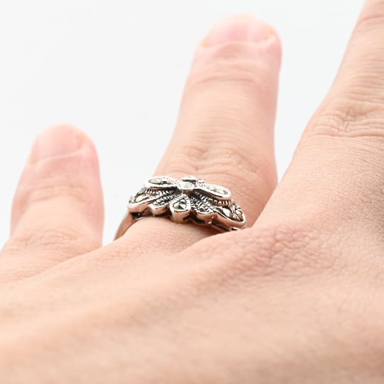 Marcasite Accent Graceful Top Design Ring #13.0 / Denmark