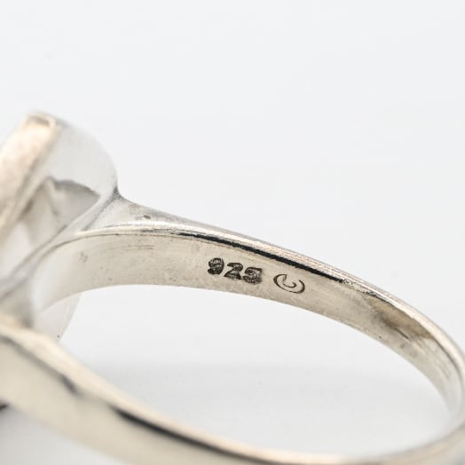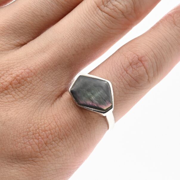 Black Mother Of Pearl Inlay Hexagon Top Ring #16.5 / Denmark