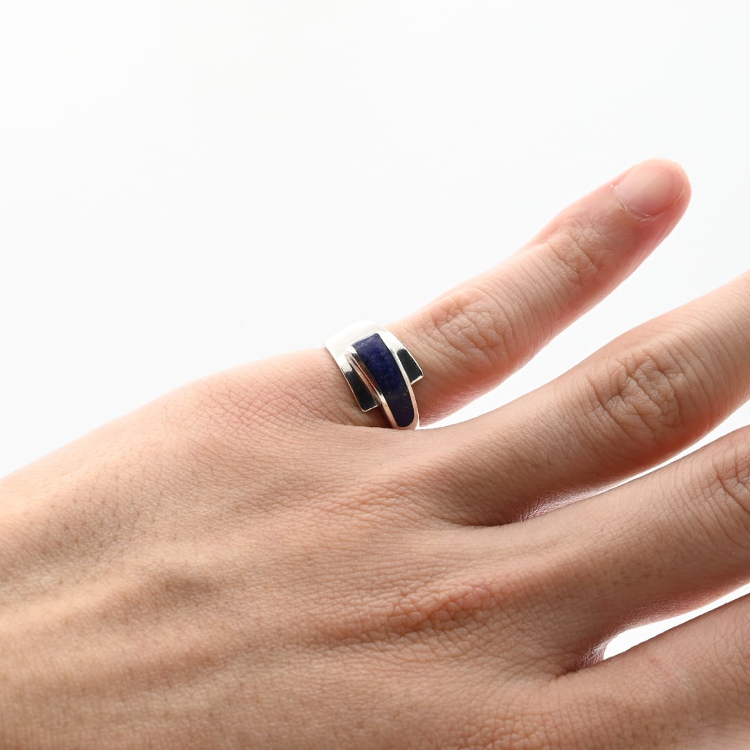 Lapis Lazuli Accent Modern Asymmetry Design Ring #10.0 / USA