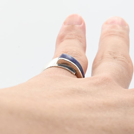 躍動感を感じるアシンメトリーデザイン×質の良いネイビーストーンの組み合わせが秀逸な一品。