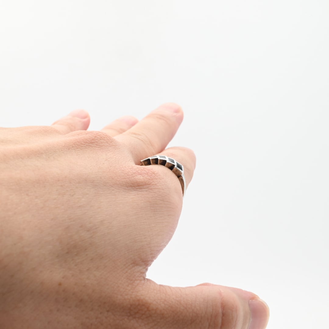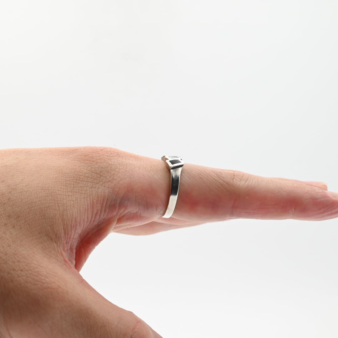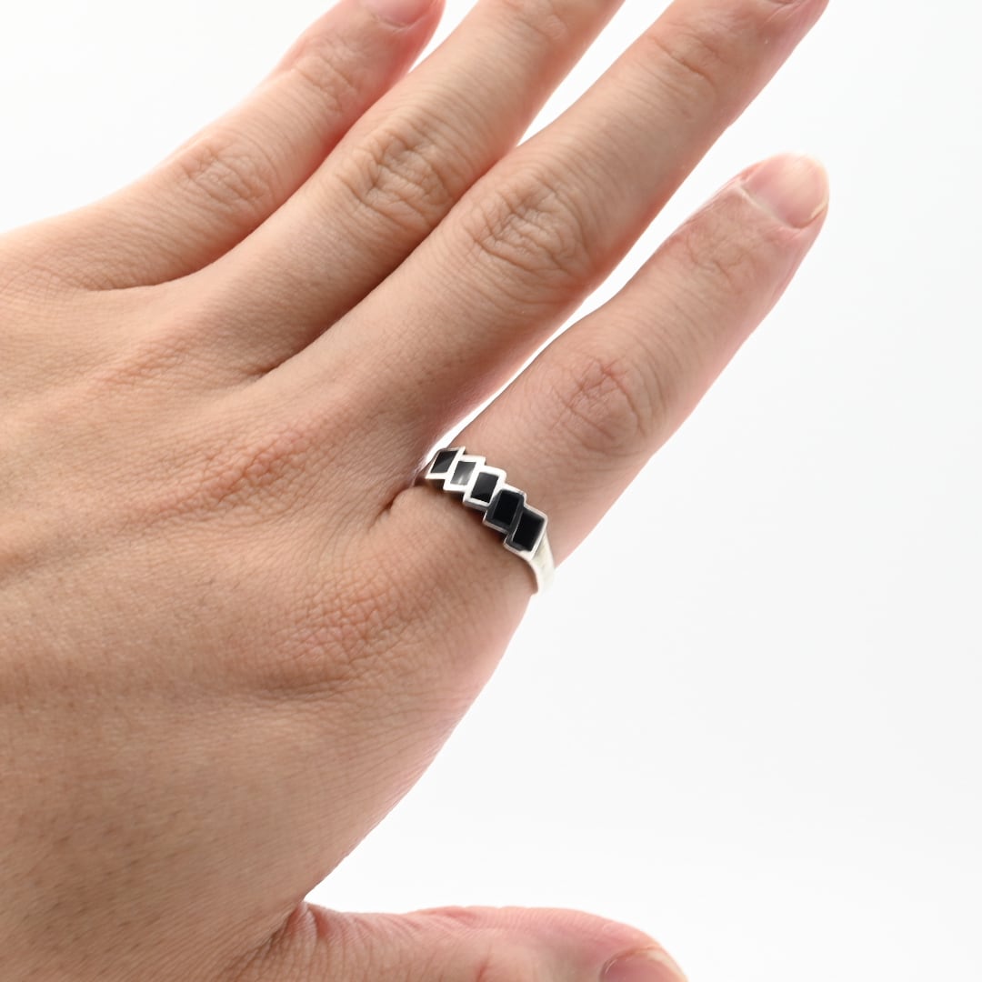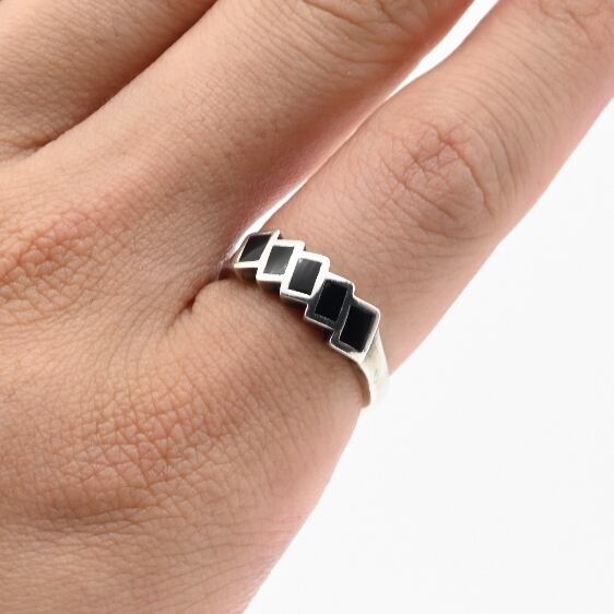 Black Onyx Inlay Stairs Design Ring #14.5 / Denmark