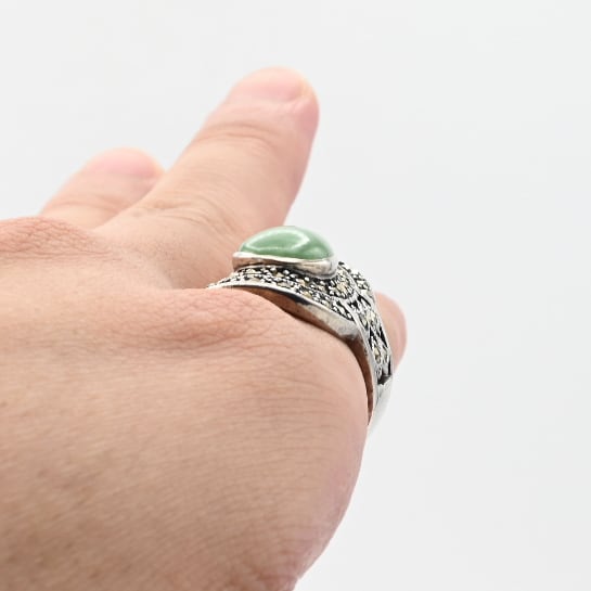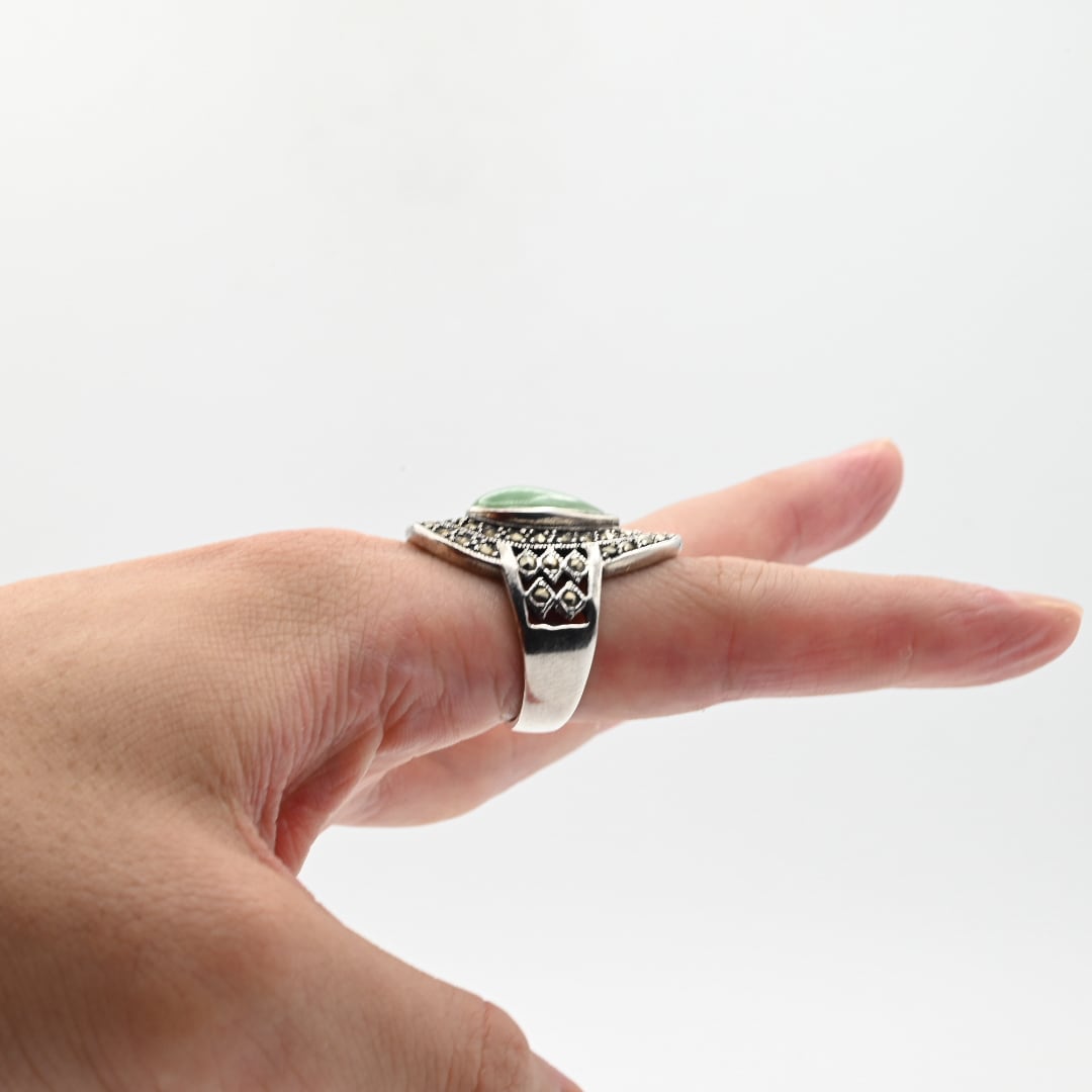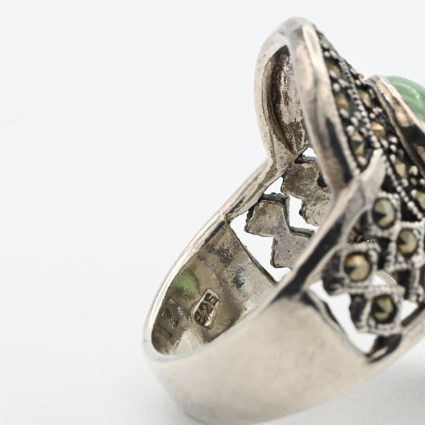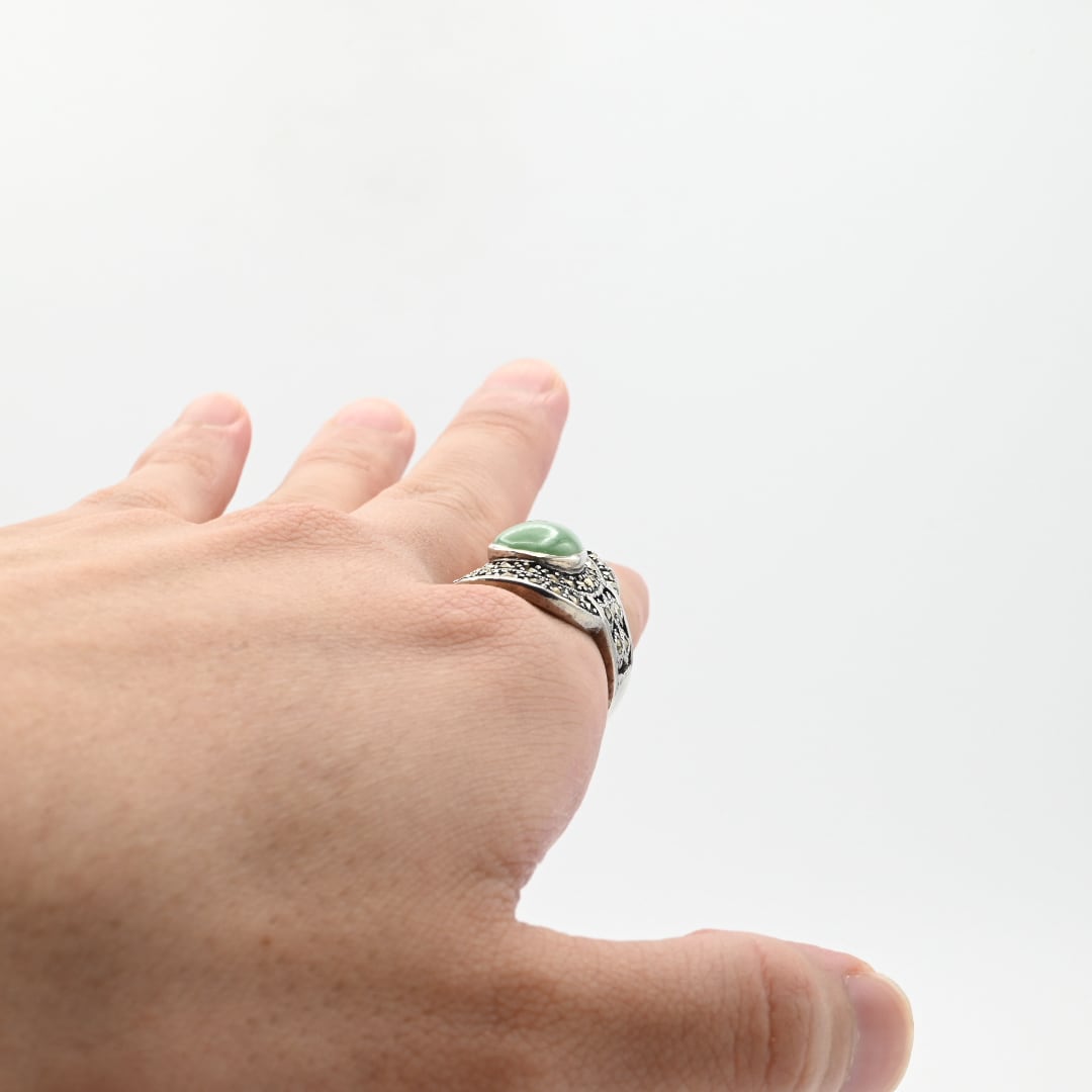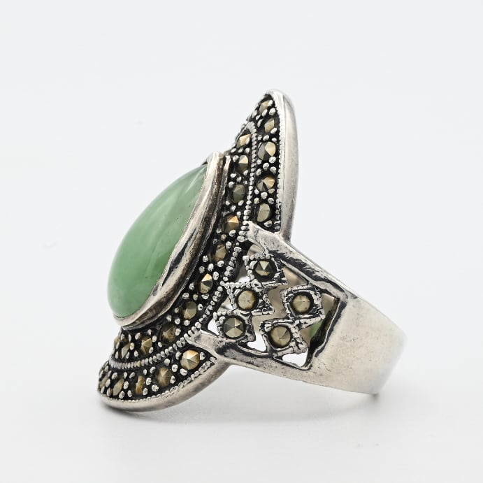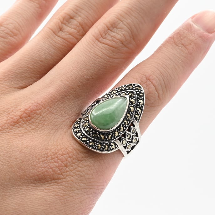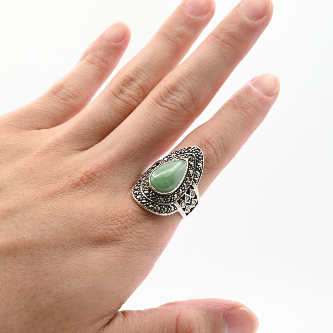 Jade / Marcasite Accent Huge Tear-drop Design Ring #19.0 / Denmark