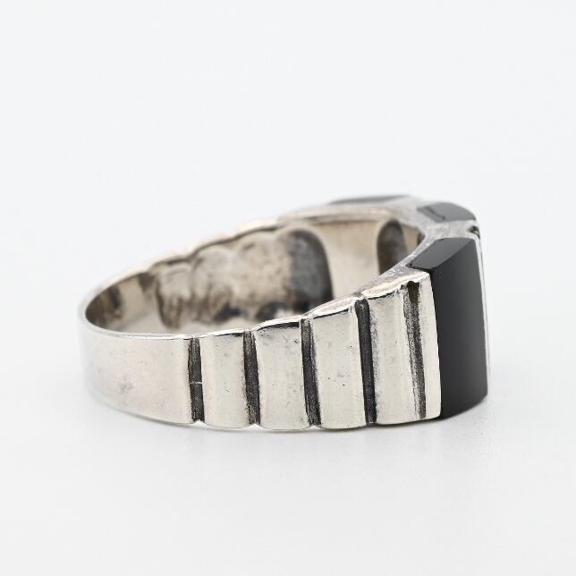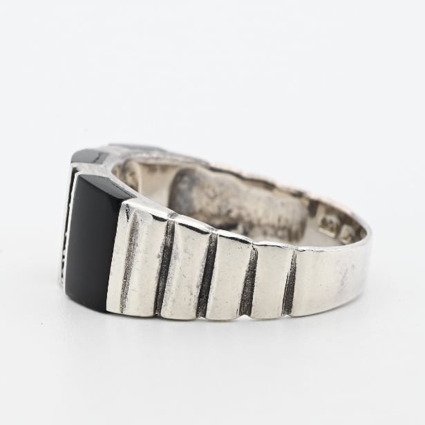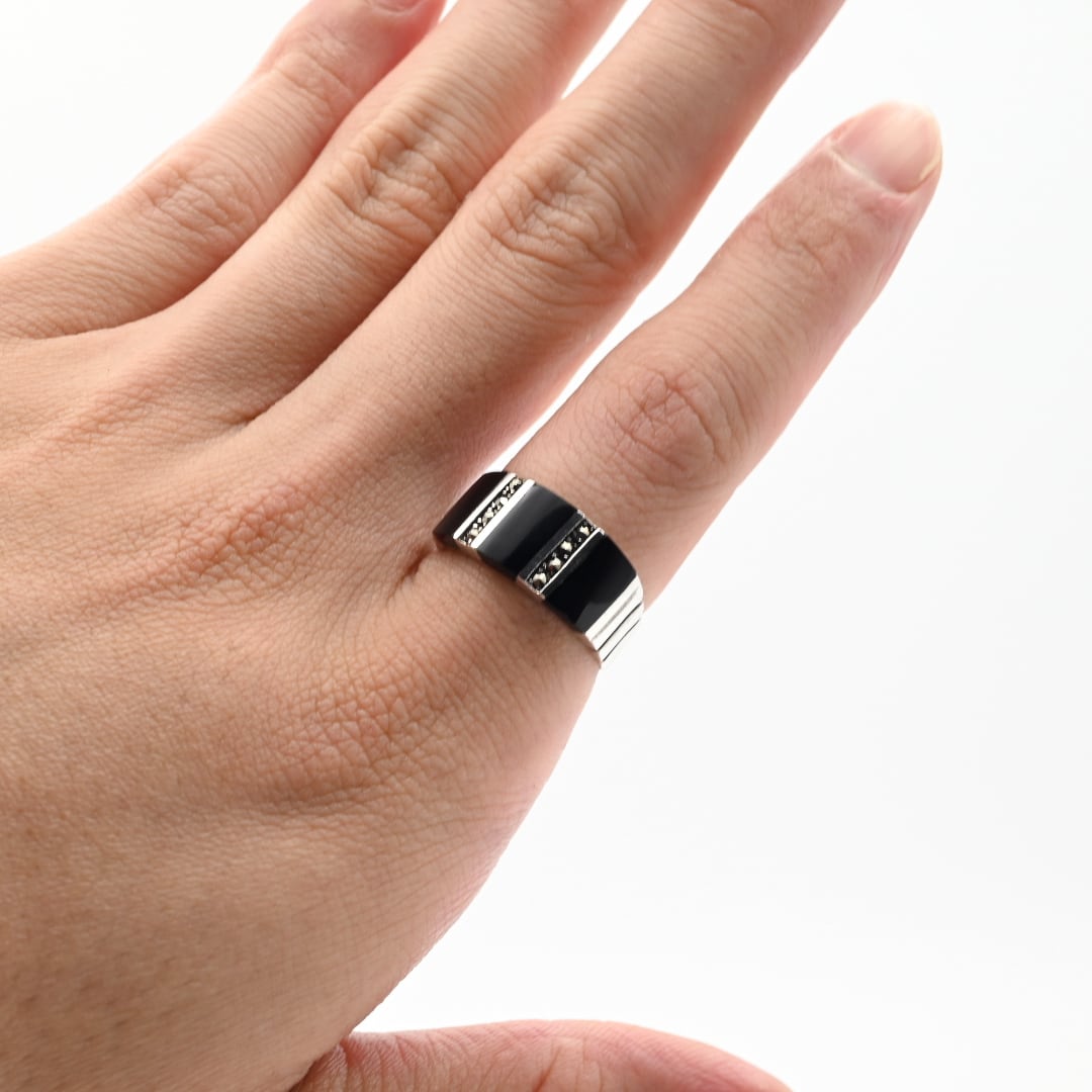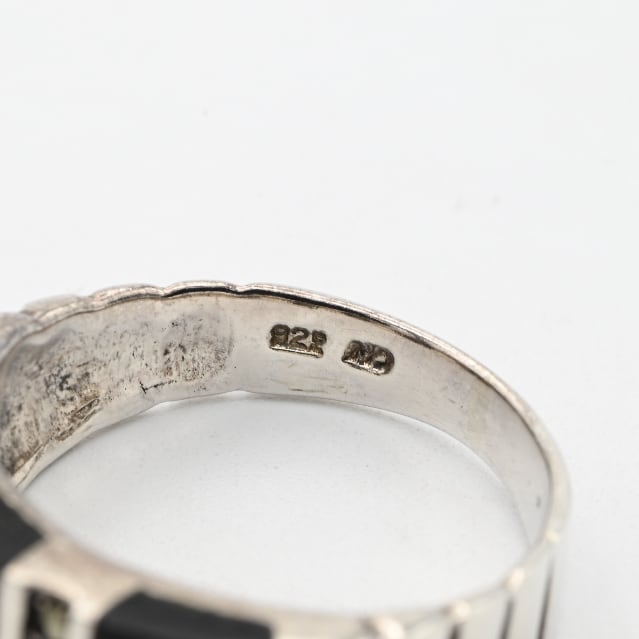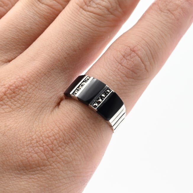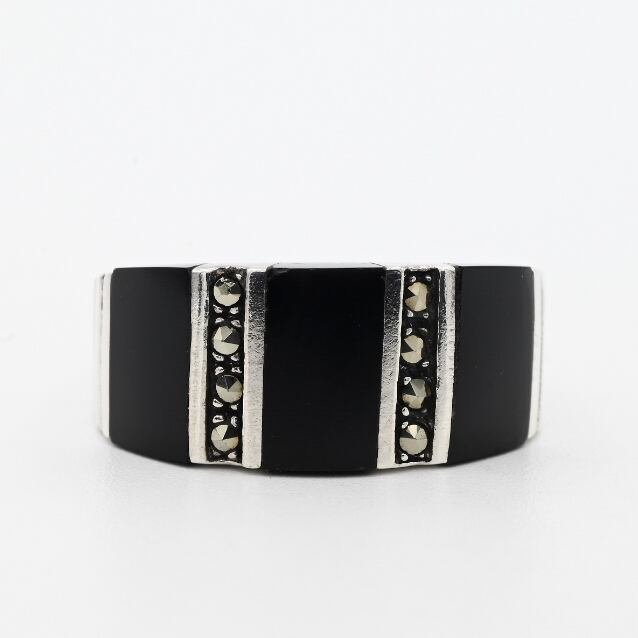 Black Onyx / Marcasite Accent Wide Tapered Ring #16.0 / Denmark