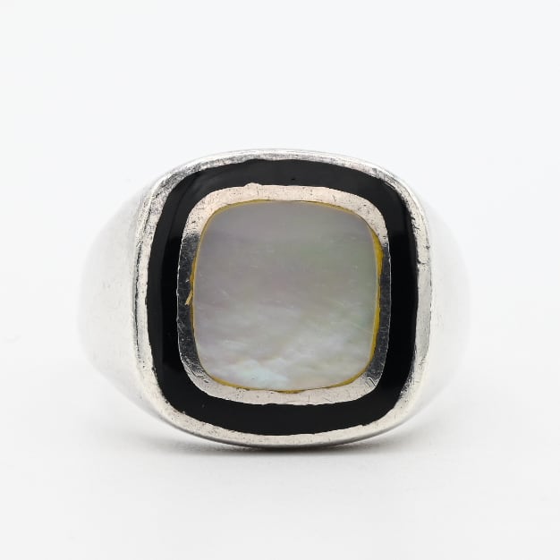 Mother Of Pearl / Black Onyx Inlay Signet Ring #17.0 / Denmark