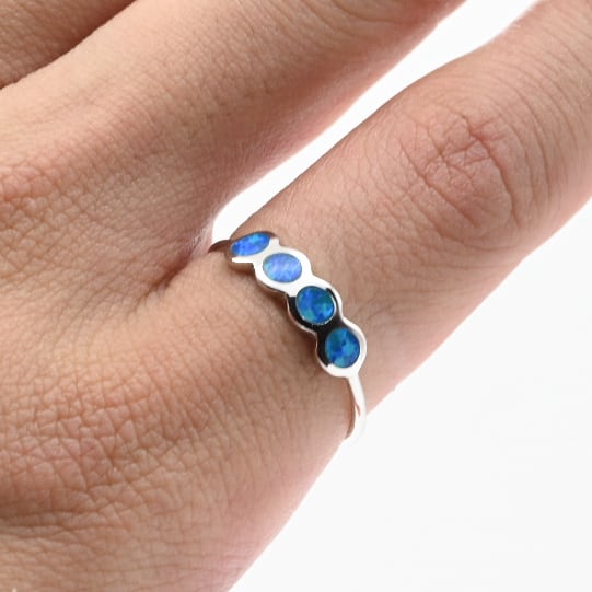 Blue Opal Inlay Continuous Circle Top Ring #18.5 / Denmark