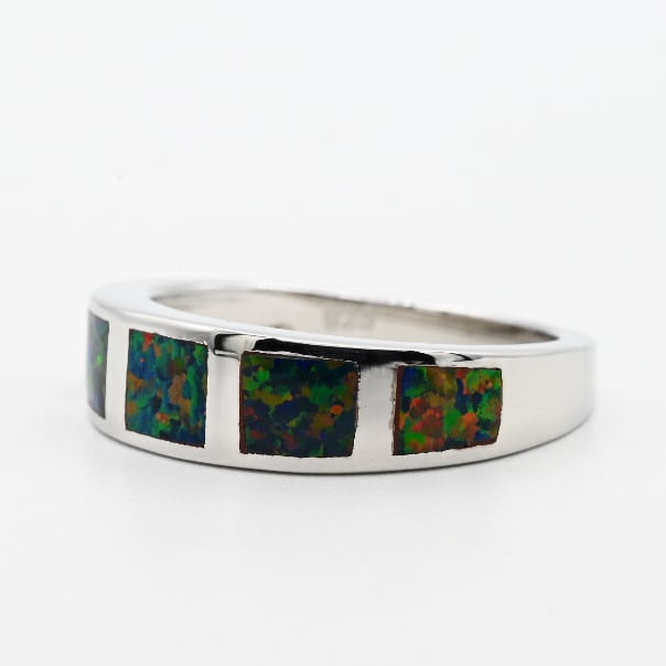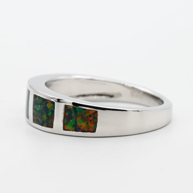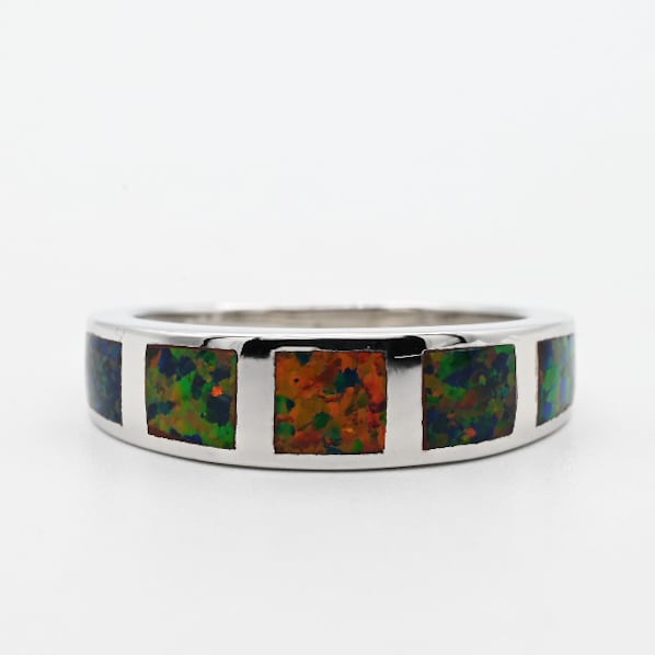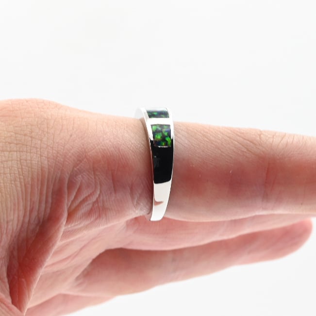 Black Opal Inlay Tapered Design Ring #16.5 / Denmark