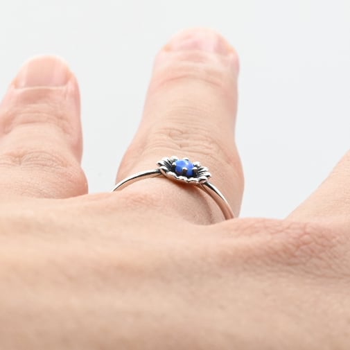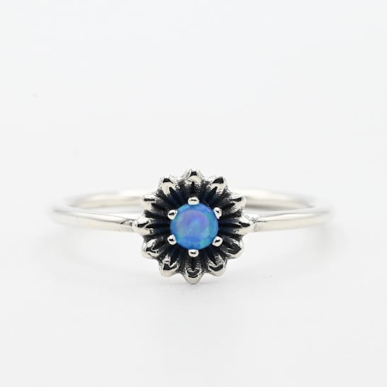 Blue Opal Accent Tiny Flower Design Ring #13.0 / Denmark