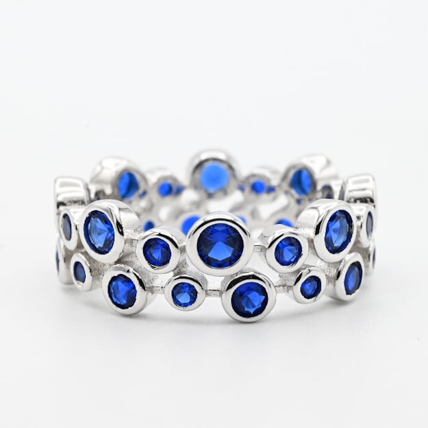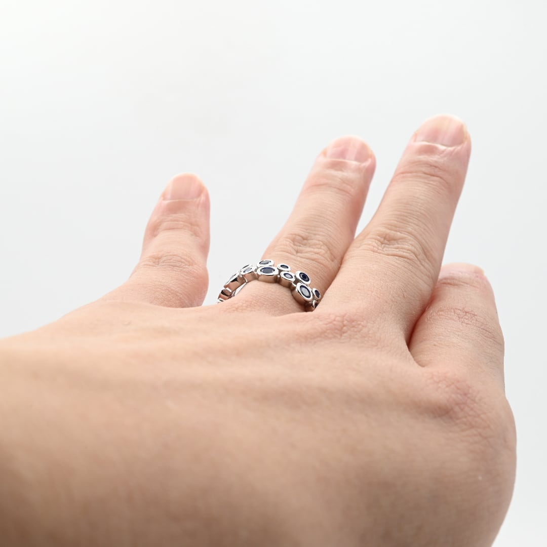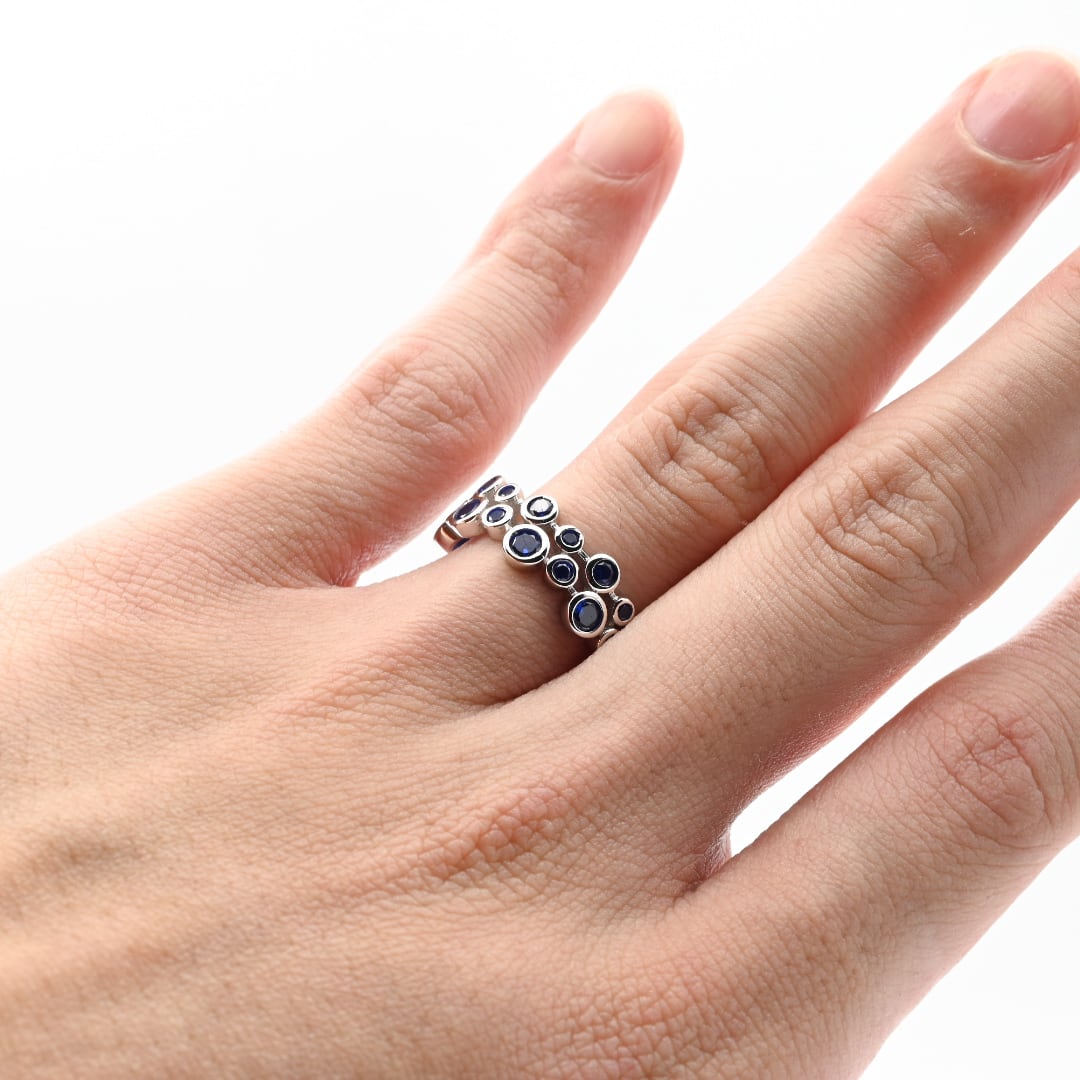 Blue Sapphire Accent Bubble Design Eternity Ring #14.5 / Denmark