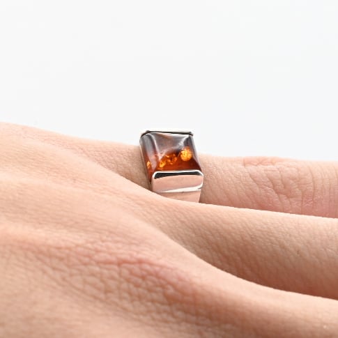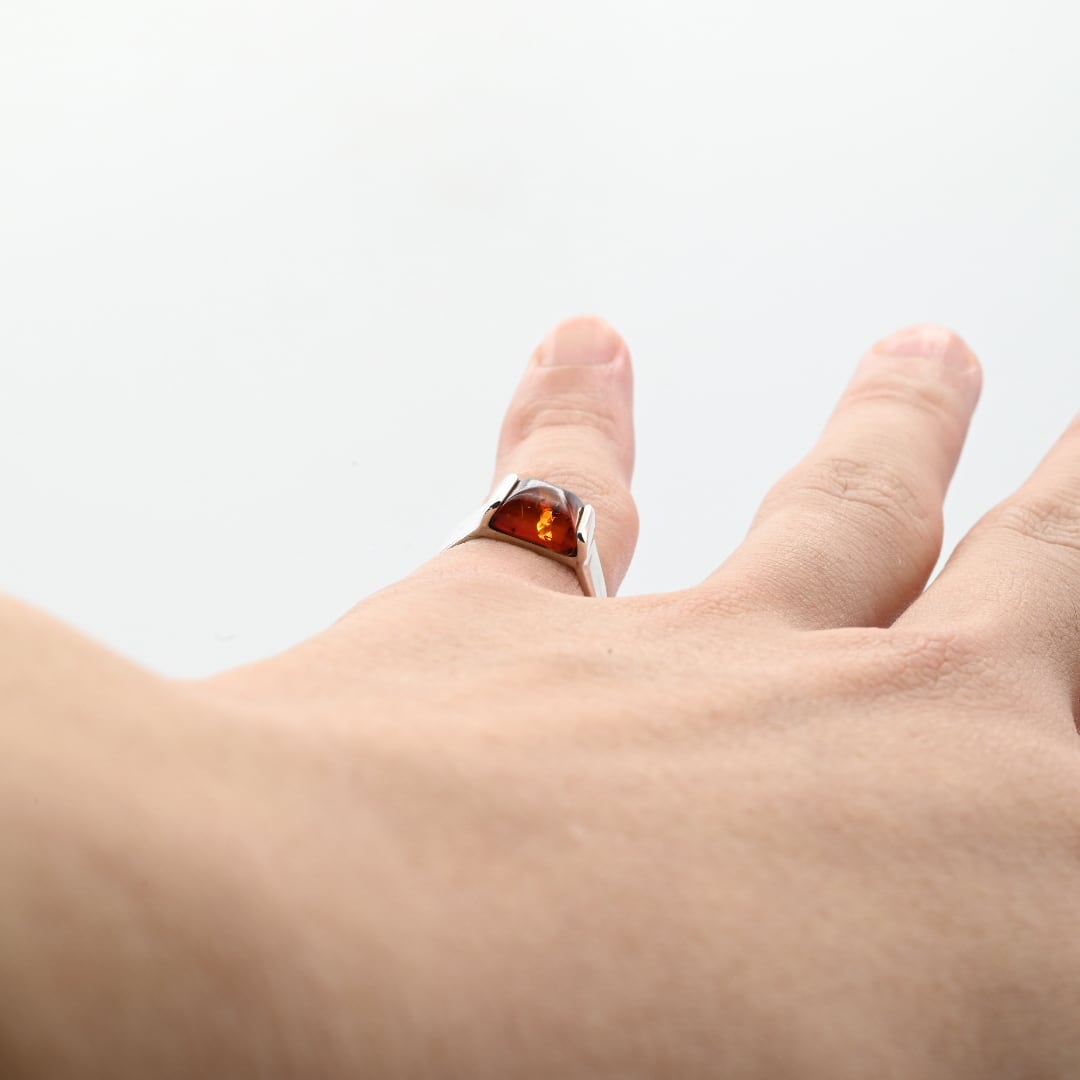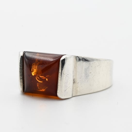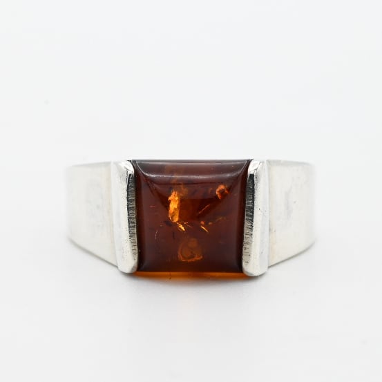 Square Amber Top Modern Style Ring #9.5 / Denmark