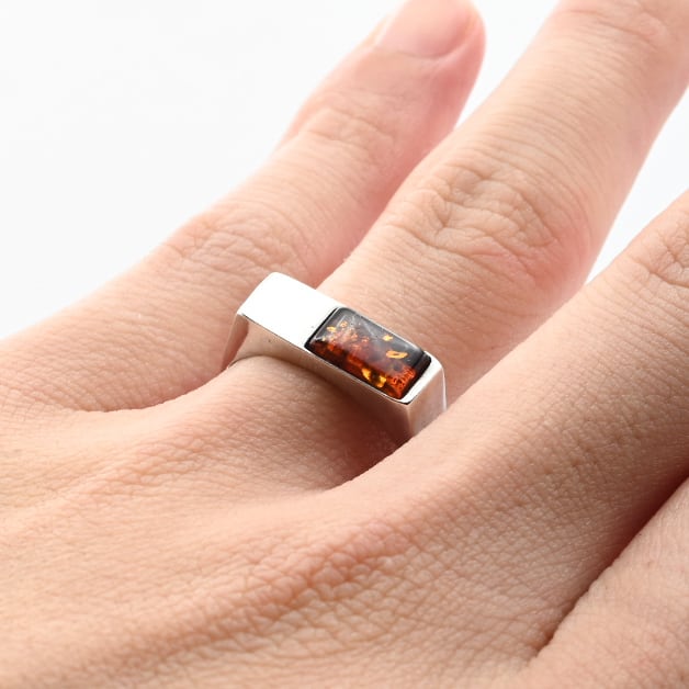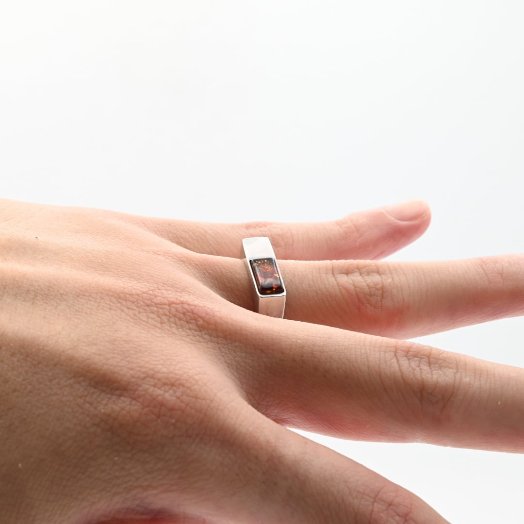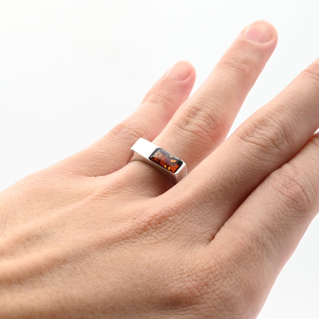 Amber Accent Sophisticated Asymmetry Design Ring #15.5 / Denmark