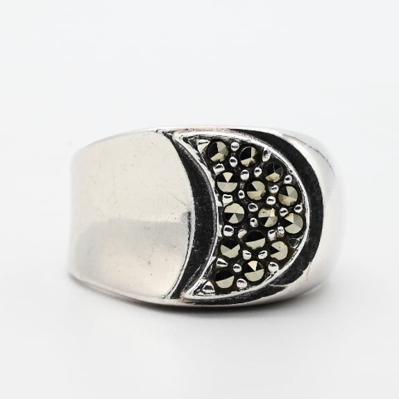Marcasite Accent Half Moon Design Ring #13.0 / Denmark