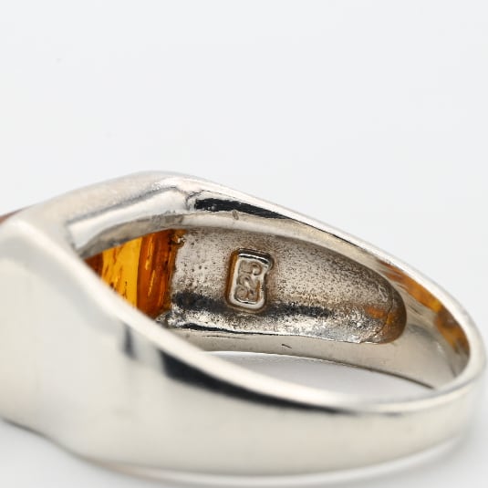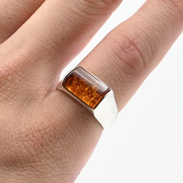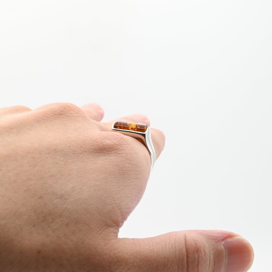 Accent Amber Top Modern Signet Ring #15.5 / Denmark